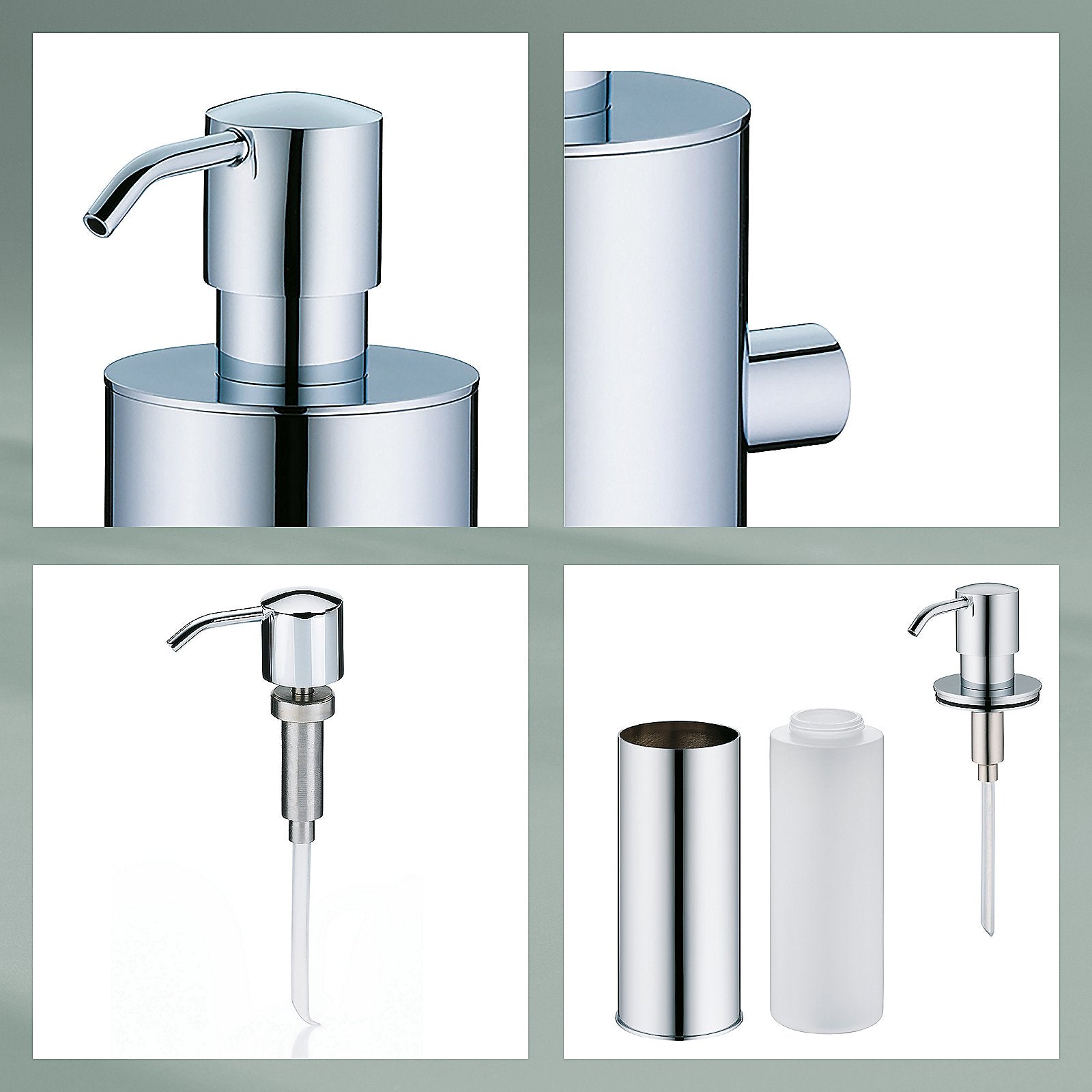 De Brass zeepdispenser met wandbevestiging van Kela is van hoge kwaliteit en heeft een stijlvol design. De pomp is speciaal ontwikkeld om druppelen tegen te gaan. Vanwege het materiaal is de pomp uitermate geschikt voor vochtige ruimtes. Hij is gemakkelijk schoon te maken en bij te vullen vanwege de verwijderbare binnenkant. Daarnaast is hij gemakkelijk met schroeven aan de muur te bevestigen zodat hij geen plek op de wastafel in beslag neemt. Hij is verkrijgbaar in 2 verschillende maten. De kleine heeft een inhoud van 0,2 L en de grote heeft een inhoud van 0,4 L. Bevestigingsmateriaal wordt meegeleverd.