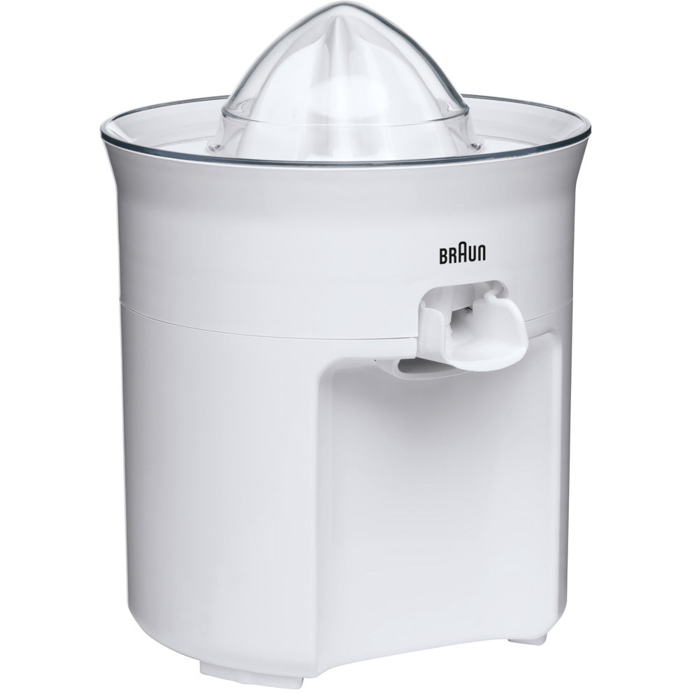 Deze Braun CJ3050 Citruspers is zeer krachtig en voorziet in alle gemakken. Door het indrukken van de perskegel start en stop de pers automatisch. Er is geen sap reservoir, het sap wordt gelijk in het glas geperst, zo kun je gelijk zien hoeveel vruchten er nodig zijn voor één glas. De pers heeft een anti drup tuit, die omhoog klikt om zo zonder te morsen een glas te wisselen. De losse onderdelen zijn vaatwasserbestendig.