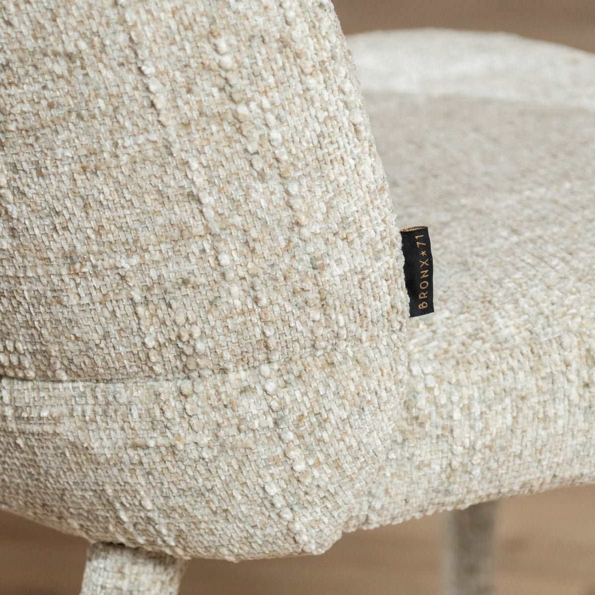 De Charlie is bekleed met een chenille stof, een hoogwaardige grof geweven meubelstof die kracht en comfort perfect combineert. De robuuste structuur voelt zacht en fluweelachtig aan, terwijl subtiele kleurschakeringen in de kleur zorgen voor een levendig en eigentijds karakter. Dankzij de water- en vuilafstotende eigenschappen blijft de barkruk niet alleen mooi, maar ook praktisch in gebruik: ideaal voor lange avonden aan de bar, gezellige borrels of zelfs intensief zakelijk gebruik.