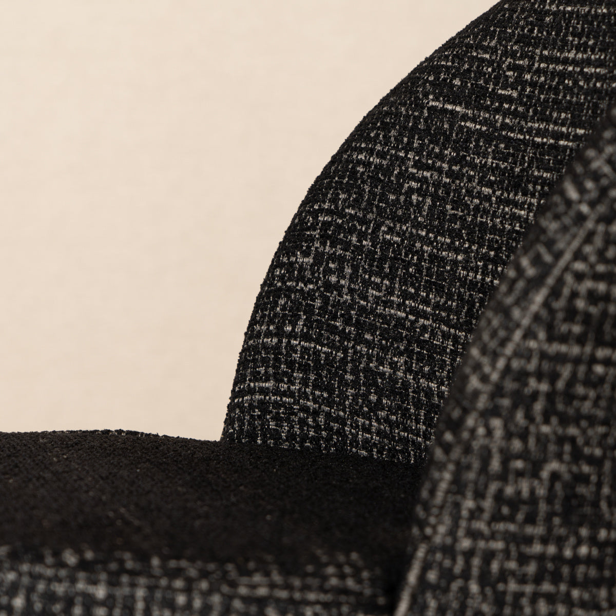 De stof is geruit, geweven met twee kleuren garen die subtiel met elkaar vermengd zijn. Dit geeft een gemêleerd effect en een verfijnde uitstraling.