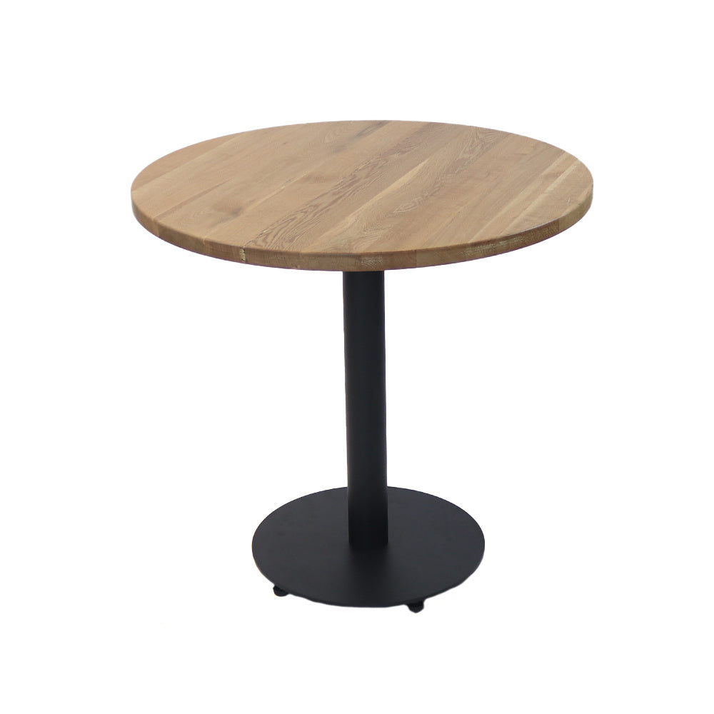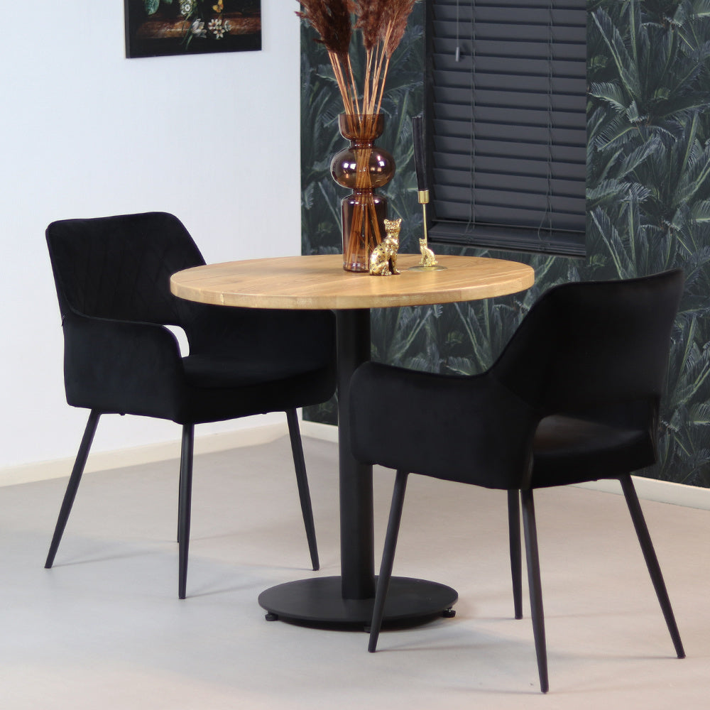 Bistrotafel Sven is een prachtige toevoeging aan de eetkamer! Het tafelblad is gemaakt van massief eikenhout. Dit blad heeft een lichte kleur, waardoor deze gemakkelijk te combineren is in verschillende interieurstijlen. Combineer de tafels met een luxueuze velvet eetkamerstoel of maak het robuust en combineer het met een industriële eetkamerstoel!