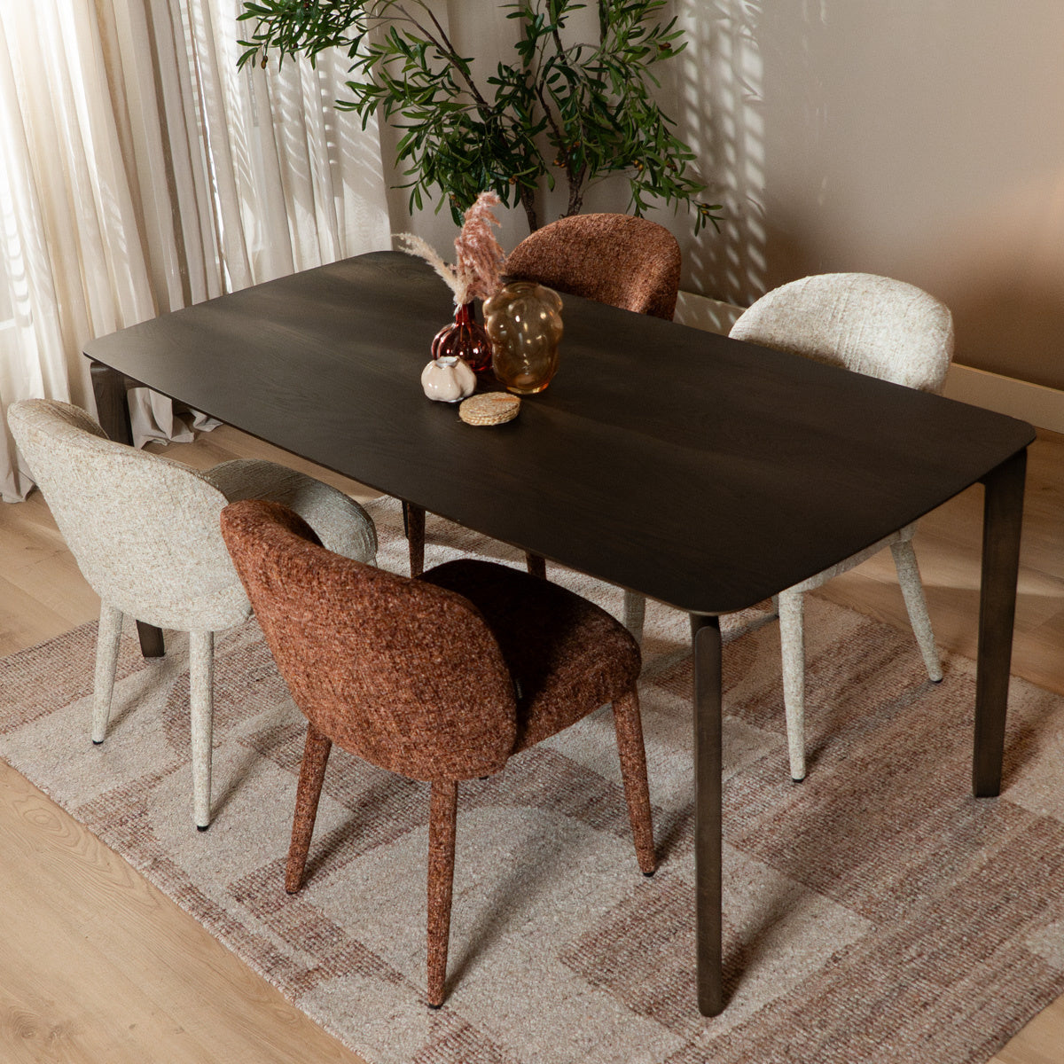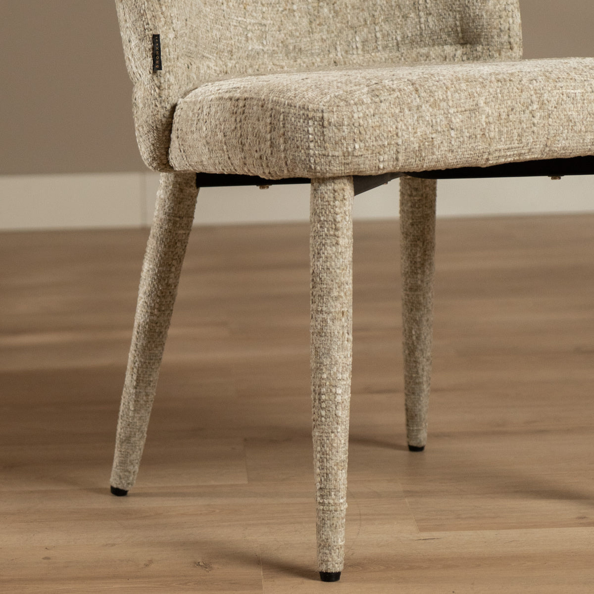 De Charlie is bekleed met een chenille stof, een hoogwaardige grof geweven meubelstof die kracht en comfort perfect combineert. De robuuste structuur voelt zacht en fluweelachtig aan, terwijl subtiele kleurschakeringen in de koperkleur zorgen voor een levendig en eigentijds karakter. Dankzij de waterafstotende en vuilwerende eigenschappen blijft de stoel niet alleen mooi, maar ook praktisch in gebruik: ideaal voor lange diners, gezellige borrels of zelfs intensief zakelijk gebruik.