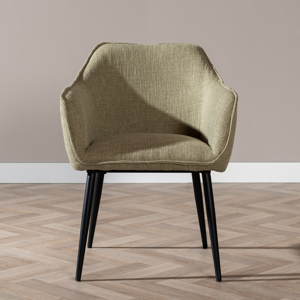 Maak jouw interieur compleet met de Ciara eetkamerstoel in een prachtige olijfgroene kleur. Deze stijlvolle en trendy eetkamerstoel is perfect voor verschillende interieur types. De Ciara eetkamerstoel is erg mooi om naar te kijken en de linnen stoffering geeft samen met de armleuningen een luxe uitstraling.