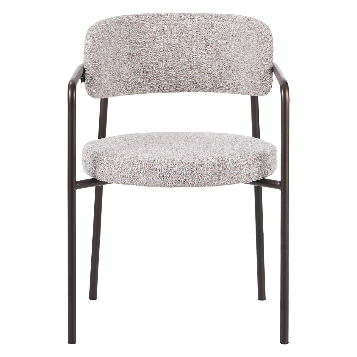 Eetkamerstoel Gio heeft door het donkerbruin stalen frame met een glanzende finish in combinatie met de luxe gemêleerde stof een exclusieve, stijlvolle uitstraling die past binnen de trendy Urban Loft stijl. De stoel is uniek door de mooie ronde vormen. De combinatie van de gemêleerde stof met subtiele glans en het donkerbruine frame maakt de stoel een echt statement aan de eettafel.
