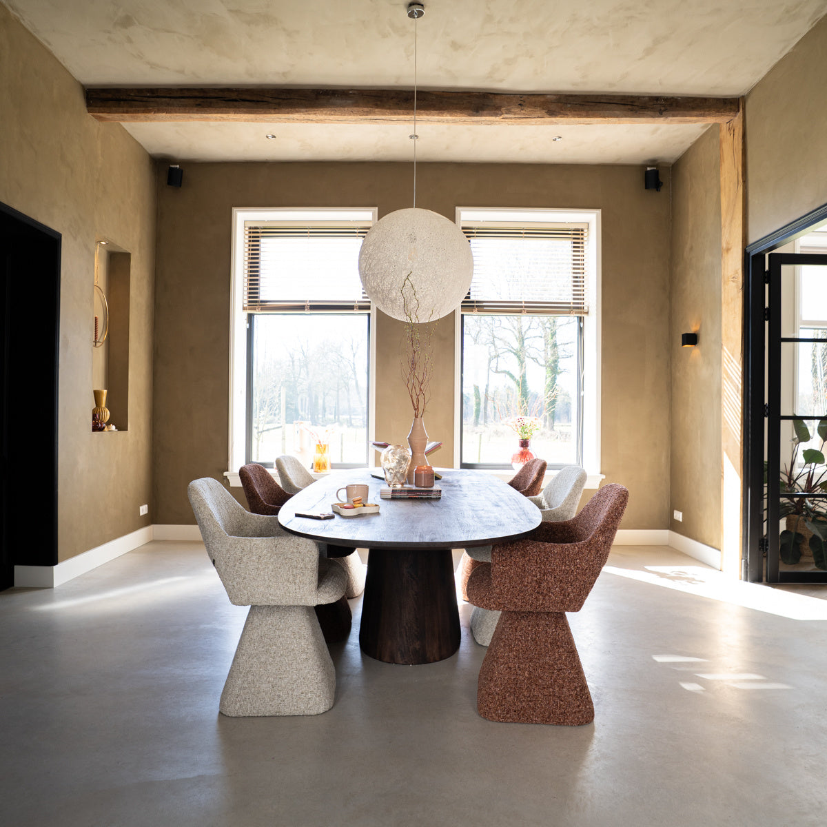 De stoel is bekleed met de stof Cestino. Deze stof is een veelzijdige en duurzame keuze, bestaande uit 95% polyester en 5% katoen, wat zorgt voor een perfecte balans tussen sterkte en zachtheid. De stof is waterafstotend en dus makkelijk schoon te maken. Het unieke aan de Josh stoel is dat de poot gestoffeerd is, de stoel wordt hierdoor een statement in ieder interieur. Let op: Dit product wordt geleverd met kunststof vloerdoppen. Deze zijn mogelijk niet geschikt voor iedere vloer. Wij verwachten dat je zelf de verantwoordelijkheid neemt om je vloer te beschermen met bijpassende vloerbeschermers.