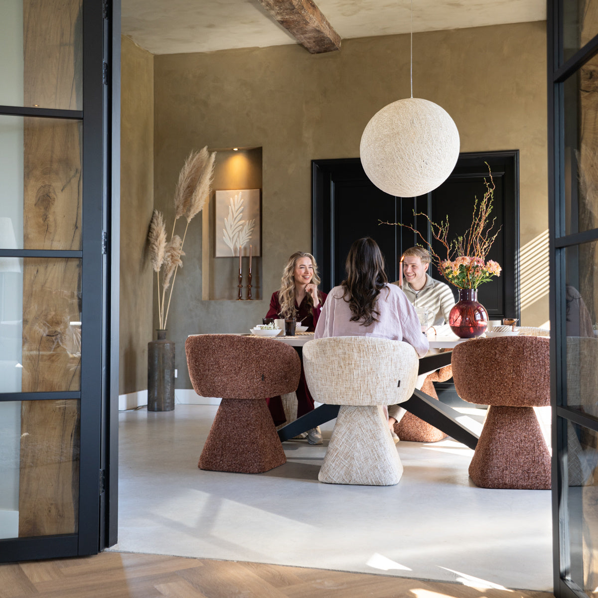 Eetkamerstoel Lenn is een luxe uitziende stoel doordat de stof van de zitting doorloopt op de poot. De stoel heeft een kuipvormige zitting. Dit zorgt voor een cleane look van de stoel. De stoel heeft een auto-returnfunctie, waardoor de zitting automatisch terugkeert naar de oorspronkelijke positie na gebruik. Dit maakt de stoel niet alleen praktisch, maar ook gebruiksvriendelijk en efficiënt. Een kuipstoel met armleuning biedt optimaal comfort en ondersteuning, perfect voor zowel werk- als ontspanningsmomenten. De stijlvolle afwerking past goed in diverse interieurstijlen. Materiaal