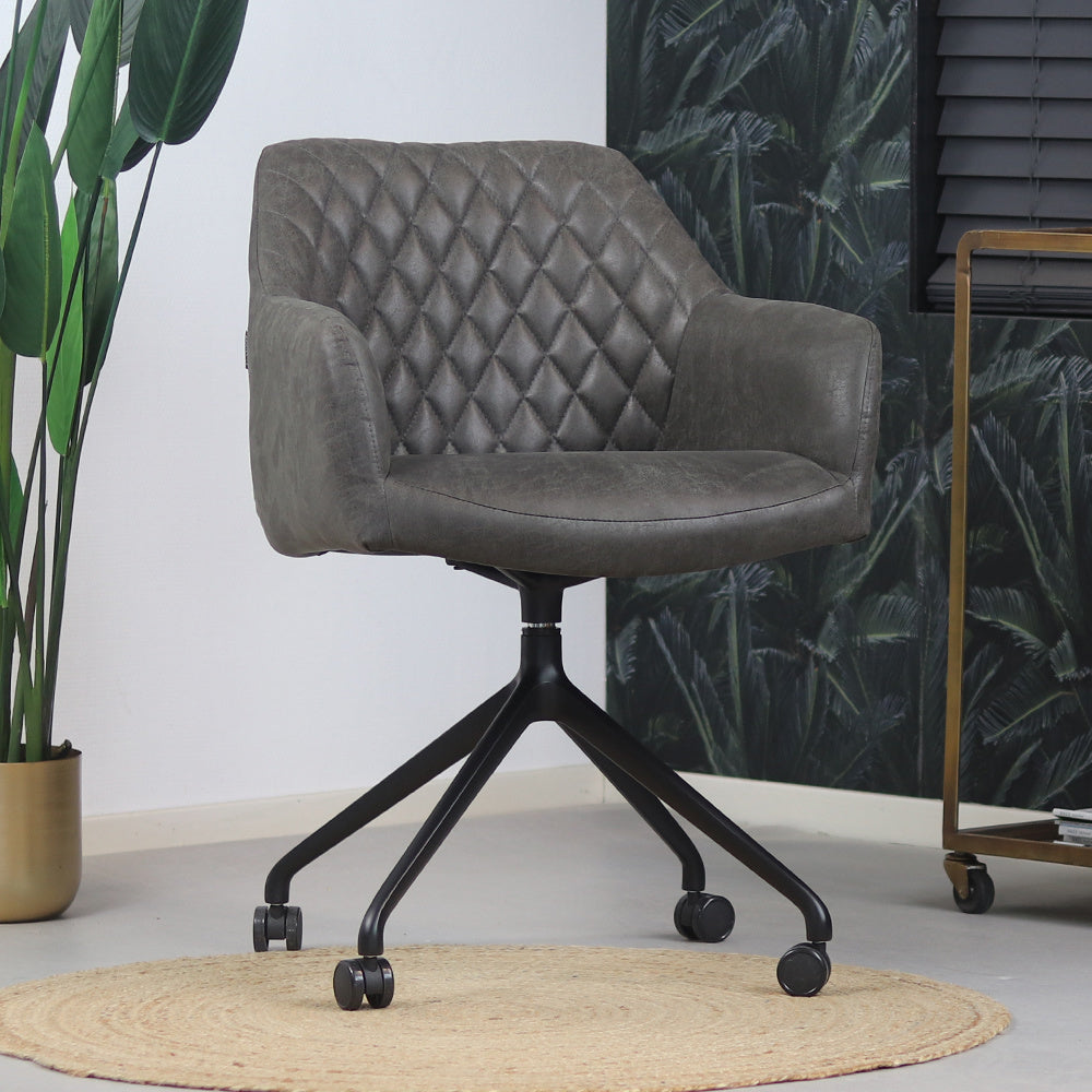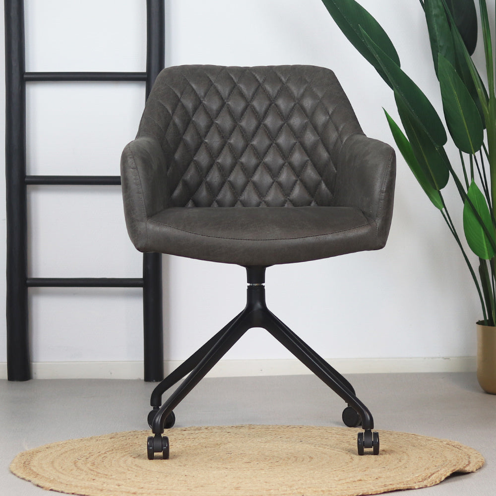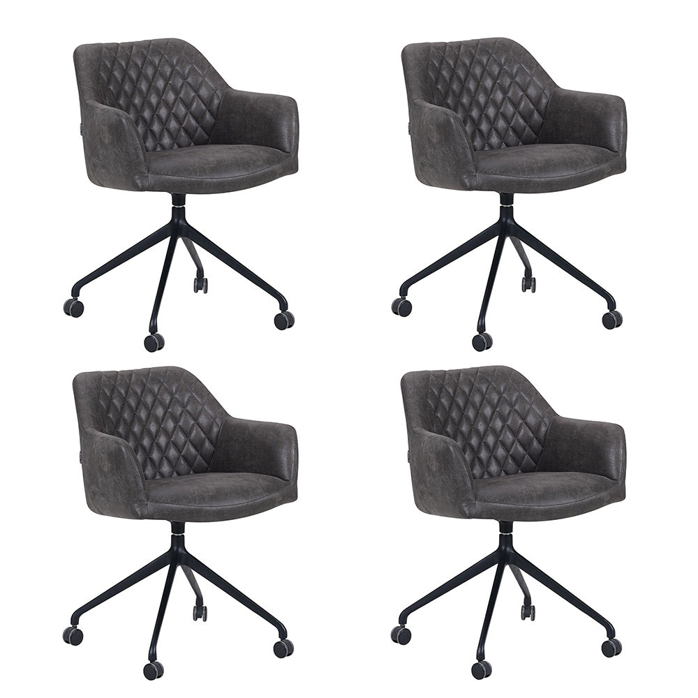 Bronx71 Eetkamerstoel met wieltjes Levi antraciet eco-leer -