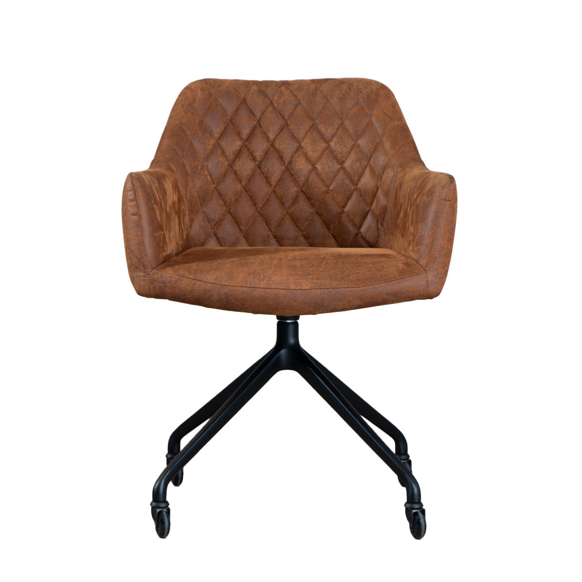 Bronx71 Eetkamerstoel met wieltjes Levi cognac eco-leer