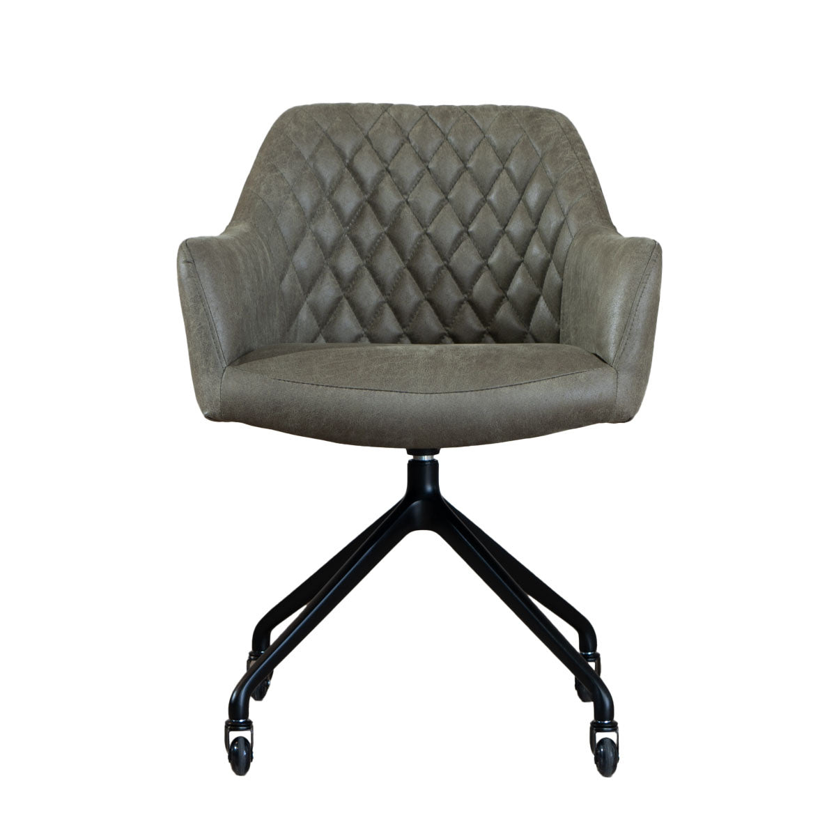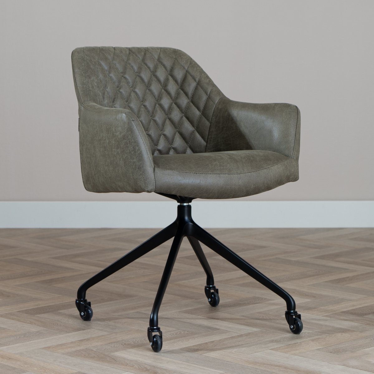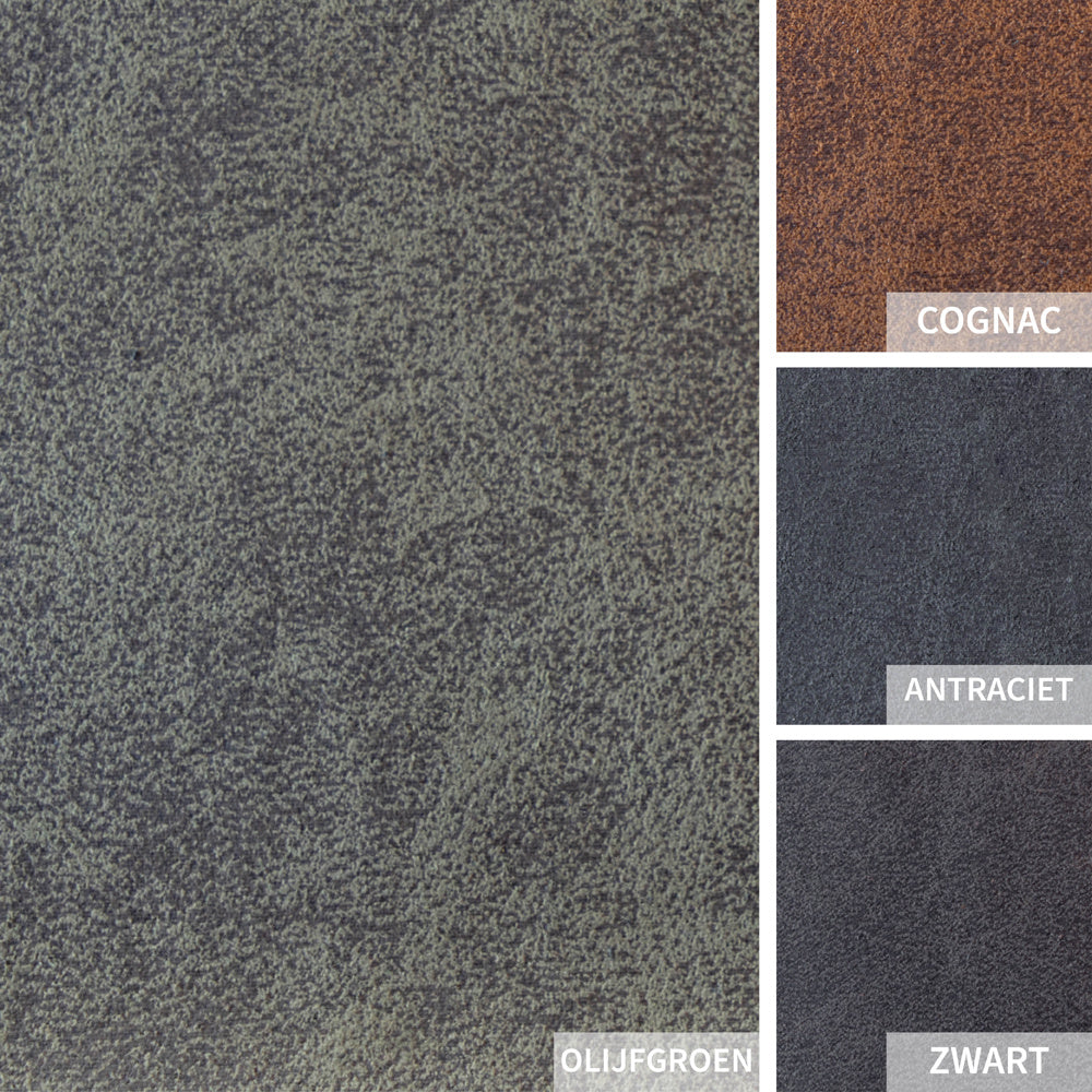Eetkamerstoel op wieltjes Levi is naast olijfgroen ook verkrijgbaar in cognac, antraciet en zwart. Combineer de kleuren voor een speels effect of houd het clean door het bij een kleur te houden. Daarnaast is deze stoel ook verkrijgbaar in een luxe velvet stof, genaamd Quinn.