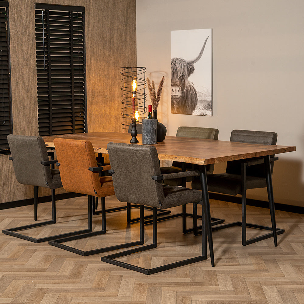 Heerlijk tafelen wordt een gegarandeerd succes met eetkamertafel Richy. Dit unieke item steelt de show in jouw eetkamer. De warme kleur van het acaciahout in combinatie met de boomstam look brengen veel sfeer in je interieur. Het tafelblad heeft een natuurlijke uitstraling wat past in een landelijk interieur. De stoere poten maken dat deze tafel ook perfect in een industriële setting past. Kortom, een onmisbare tafel in veel interieurstijlen!