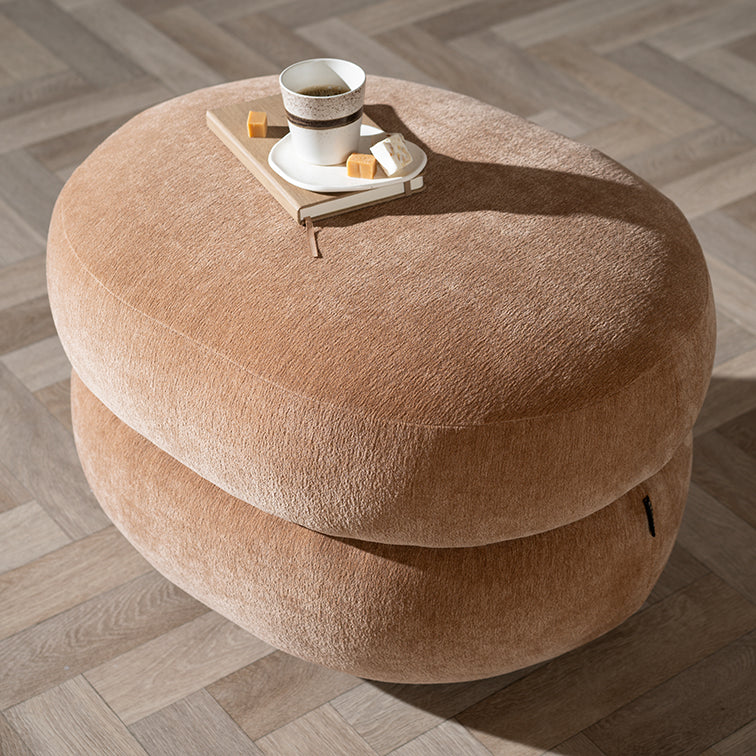 Hocker Mia chenille is een veelzijdige ovalen poef die je onder andere aan kunt schuiven bij jouw bank of kunt gebruiken als salontafel.