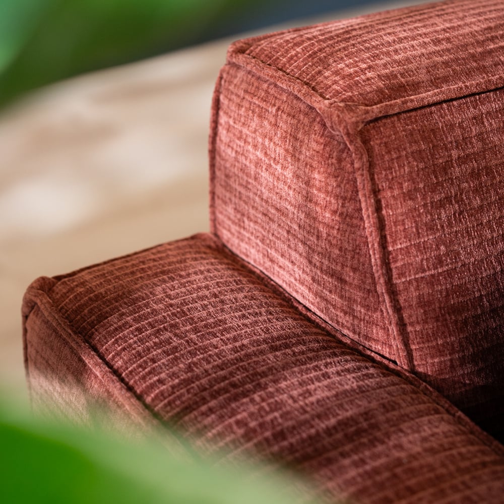 Deze Kansas bank is gemaakt van een zachte ribstof die bestaat uit 100% polyester. De stof heeft een Martindale score van 95.000. Dit betekent dat de stof zeer slijtvast is en erg lang mooi blijft. De ribstof heeft een wat dikkere streep dan de meeste ribstoffen. Daarnaast is de rib streep vrij plat, wat zorgt voor een luxe uitstraling. Tot slot voelt de stof lekker zacht aan. Dit maakt de bank nog extra comfortabel.
