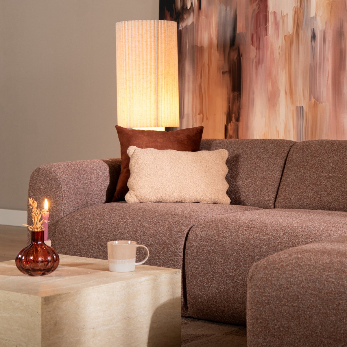 Hoekbank Maine is de perfecte balans tussen stijl en comfort, gemaakt van een fraaie bouclé stof. Dankzij het veelzijdige ontwerp past de Maine moeiteloos in verschillende interieurs.