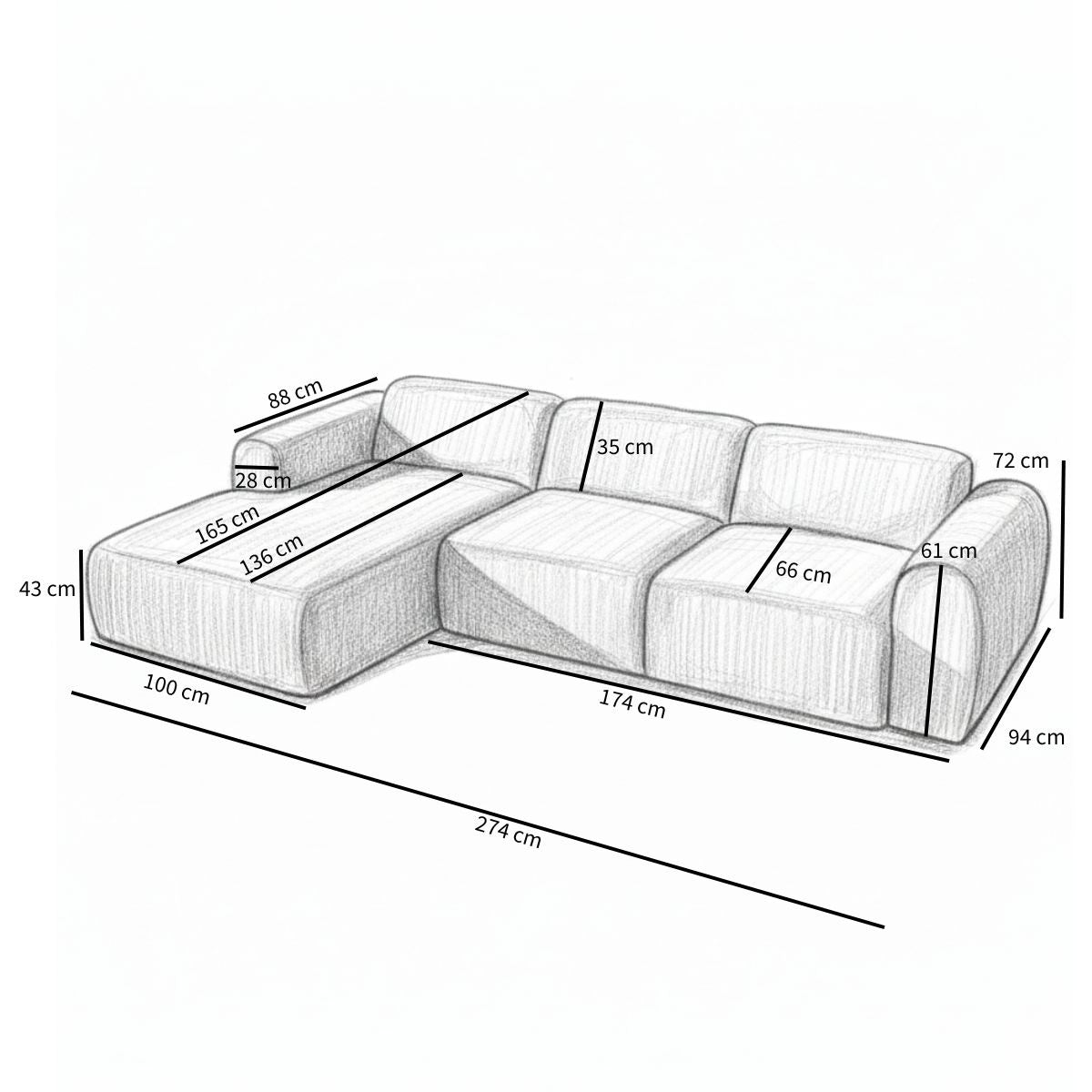 Hoekbank Maine is de perfecte balans tussen stijl en comfort, gemaakt van een fraaie chenille stof. Dankzij het veelzijdige ontwerp past de Maine moeiteloos in verschillende interieurs.