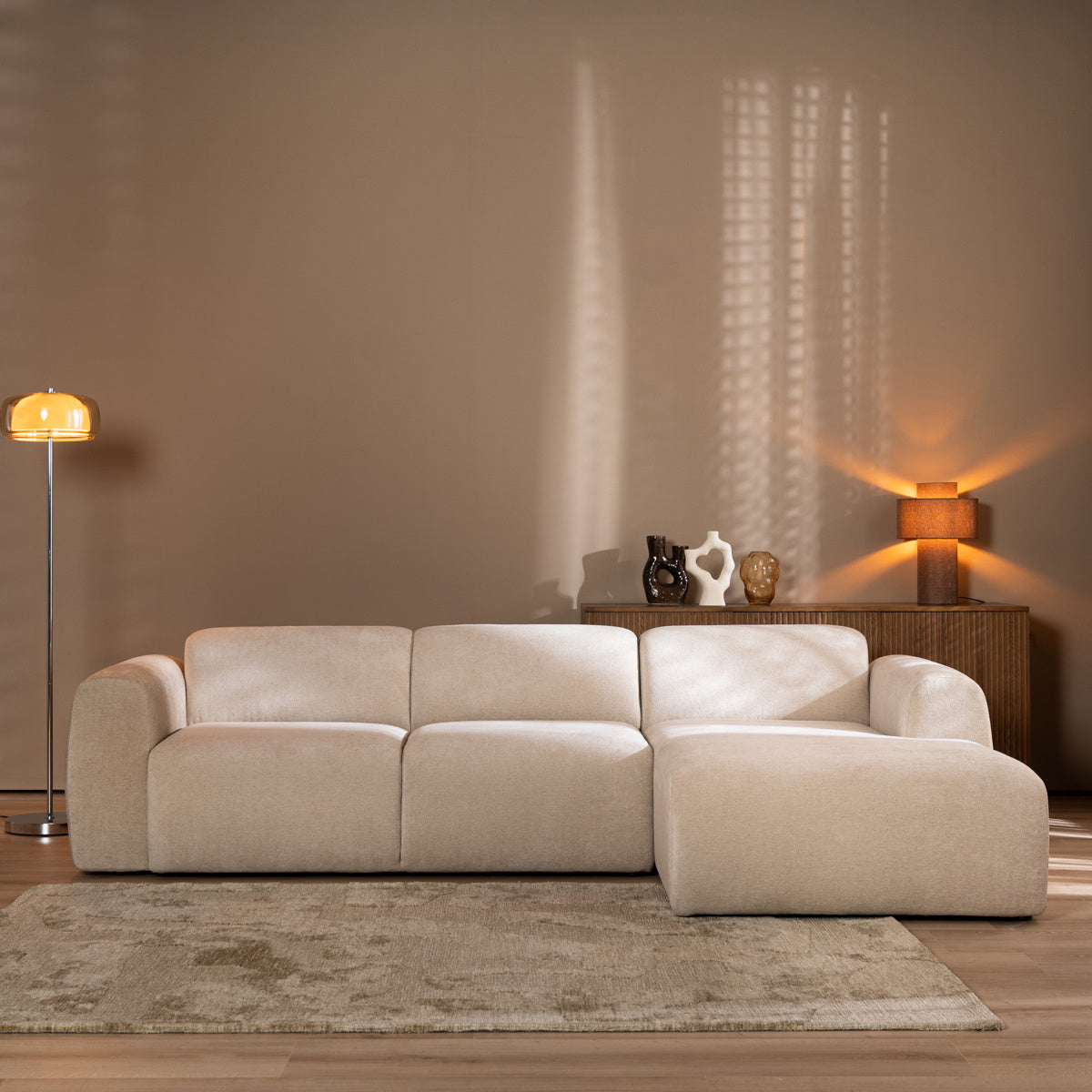 Bronx71 Hoekbank Maine chenille stof beige rechts