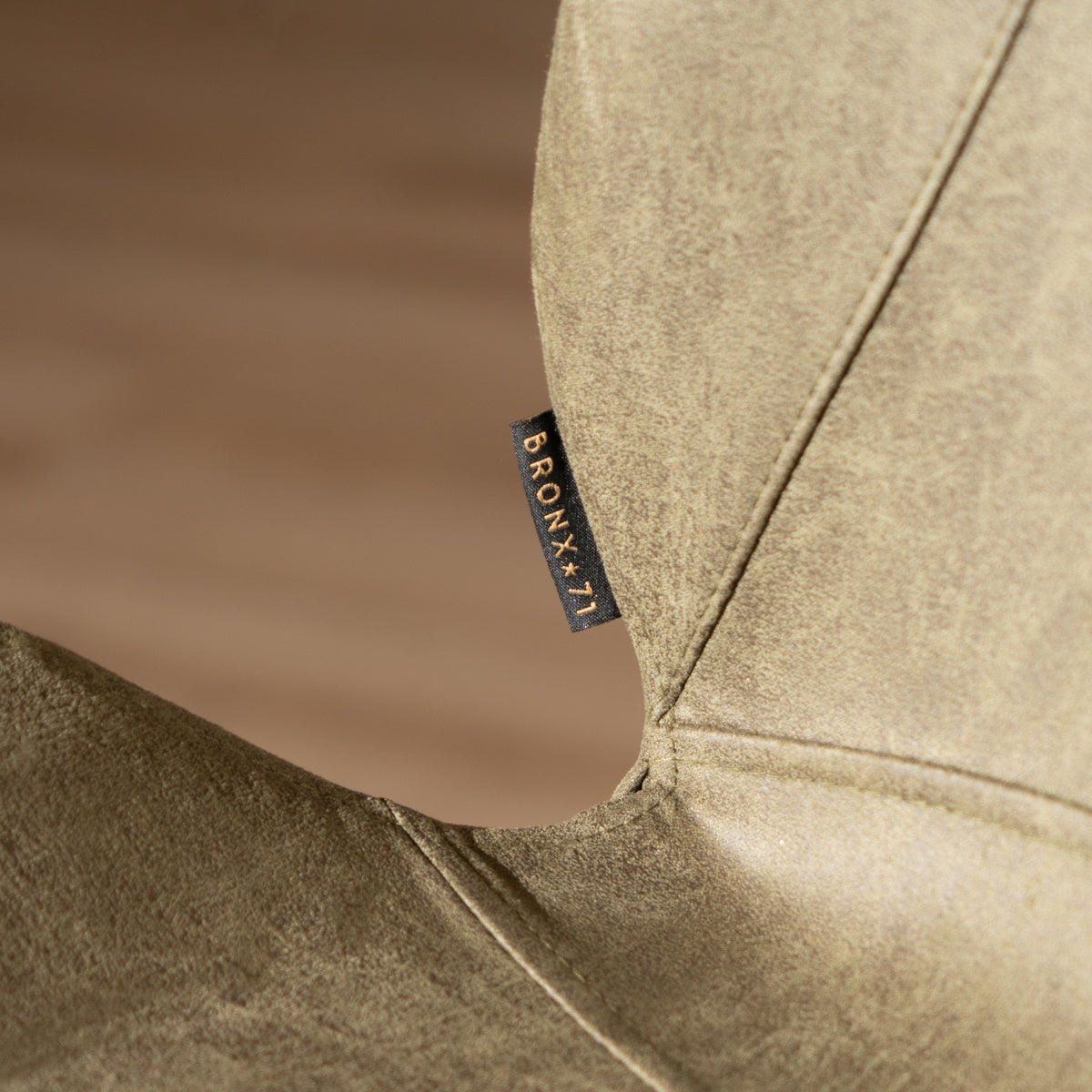 De barkruk is gemaakt van hoogwaardig Eco-leer. Eco-leer is een combinatie van leer en polyester en een vorm van gerecycled leer. Als patronen van leren huiden worden versnipperd, blijven er resten over. Deze resten worden gemalen en met polyester gecombineerd om Eco-leer te vormen. Het materiaal bestaat voor 30% uit polyester en voor 70% uit leer. Dit materiaal heeft enkele voordelen ten opzichte van 100% leer, het is namelijk gemakkelijker schoon te maken. Bovendien is de stof waterbestendig, er wordt dus geen vocht geabsorbeerd waardoor er dus ook geen vlekken ontstaan.