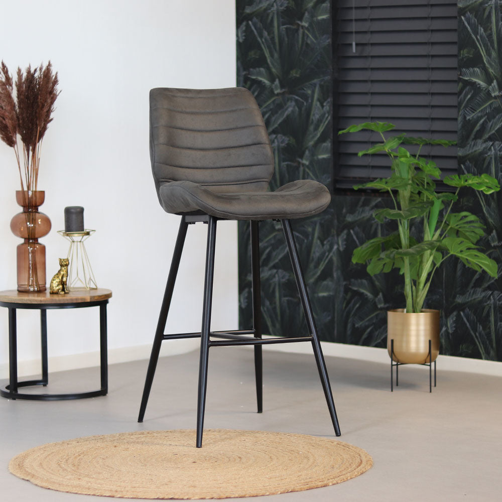 Het frame van de barkruk is gemaakt van zwart metaal wat zorgt voor een extra stoere touch! Door de combinatie van materialen past de barkruk perfect in zowel een industrieel interieur als een modern interieur! De Morris barkruk is verkrijgbaar in de kleuren antraciet en cognac.