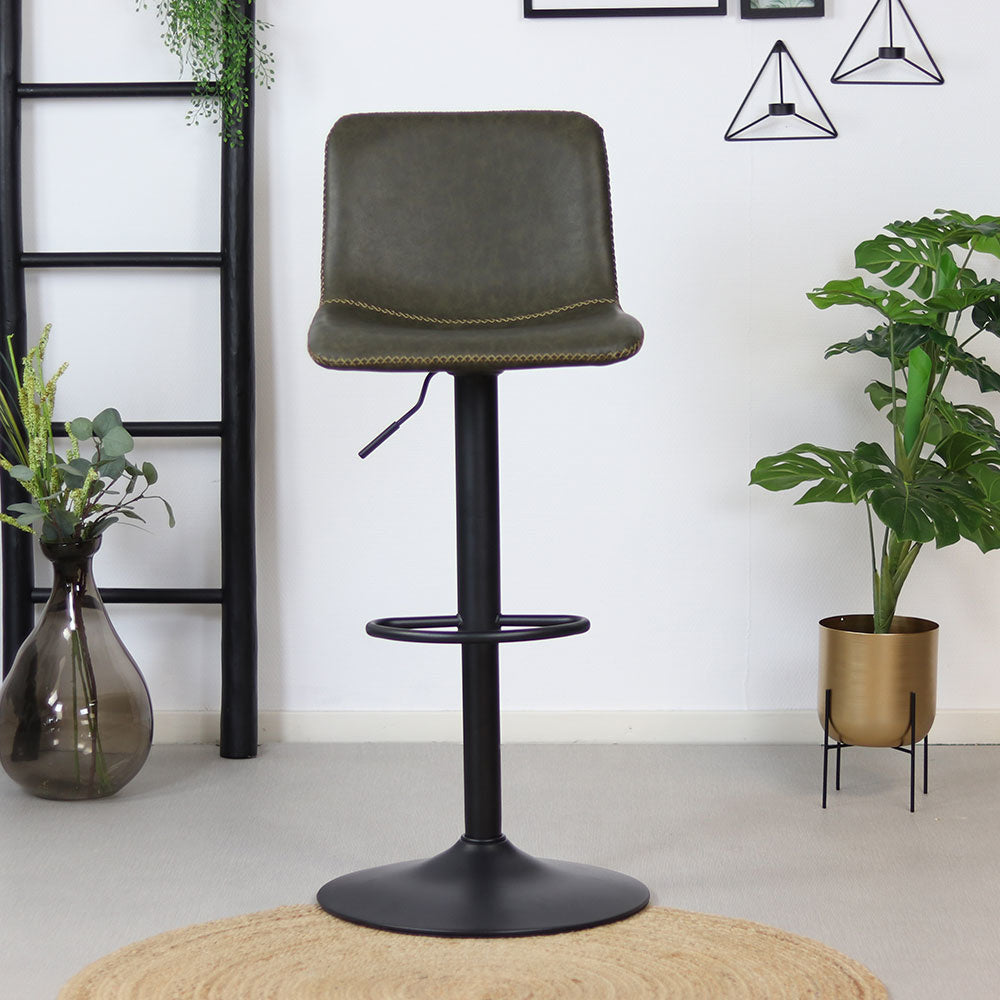 Bronx71 Industriële Barkruk Texas leer olijfgroen 60 - 76 cm -