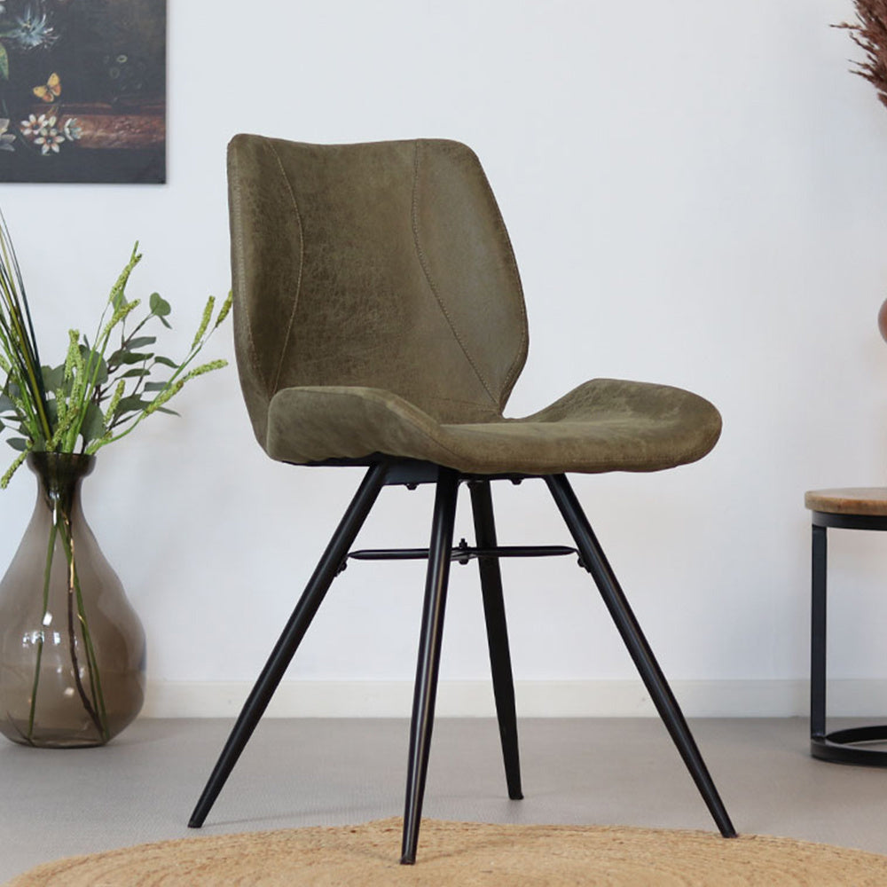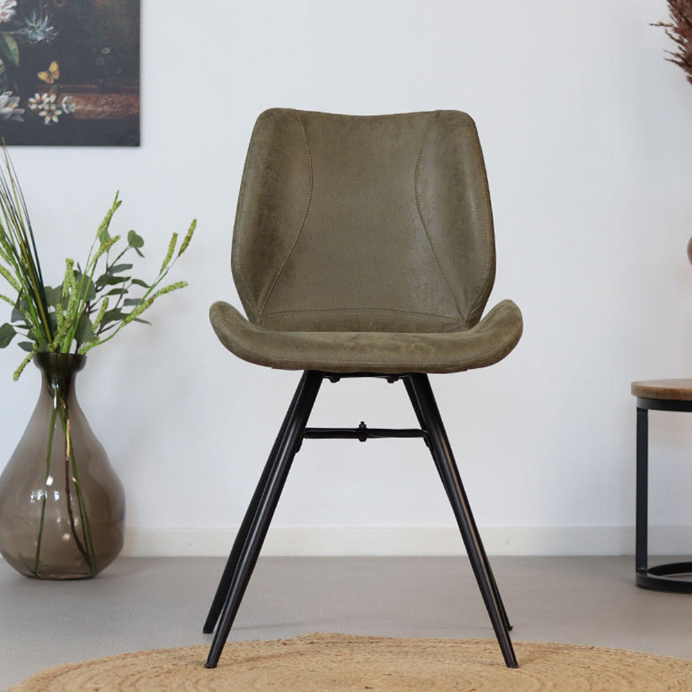 Bronx71 Industriële eetkamerstoel Barrel olijfgroen eco-leer
