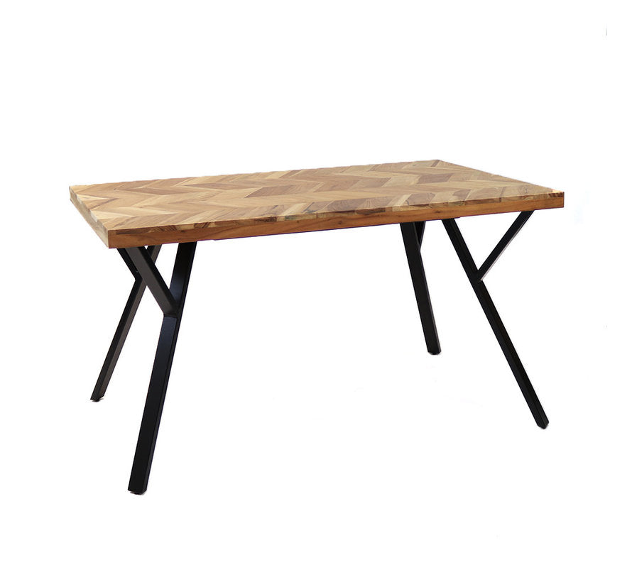 De industriële eettafel Hunter is een echte eyecatcher in de eetkamer! De eettafel past perfect in zowel een industrieel als en modern interieur. Het tafelblad is voorzien van een visgraat patroon, wat een unieke en stoere uitstraling geeft aan de tafel. Dek de tafel mooi op met het mooiste servies en verzamel al je vrienden bij elkaar voor een ultiem gezellig diner!