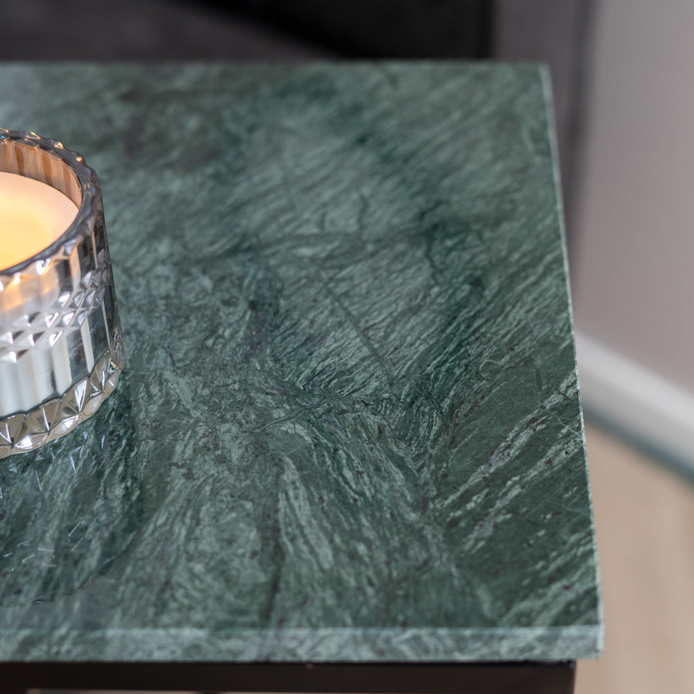 Moderne laptoptafel marmer Zoey groen is 70 cm hoog, waardoor die over de gemiddelde armleuning heen past. Het tafelblad heeft een afmeting van 44 cm breed en 31 cm diep. Het tafelblad is gemaakt van een groen marmer. Marmer kenmerkt zich door de nerven die door het steen heen lopen. Daarnaast heeft de steen van nature een mooie glans. Hierdoor is iedere tafel uniek.