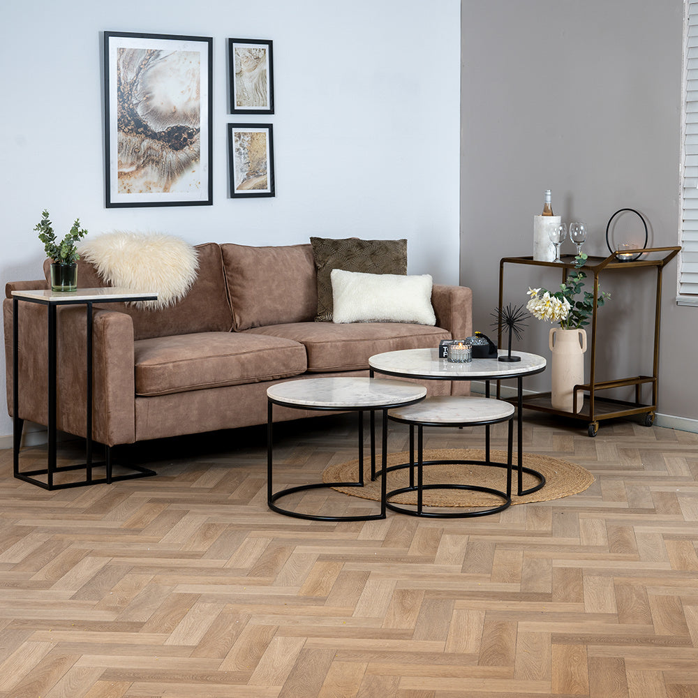 Laptoptafel marmer Zoey wit is 70 cm hoog, waardoor die over de gemiddelde armleuning heen past. Het tafelblad heeft een afmeting van 44 cm breed en 31 cm diep. Het tafelblad heeft een marmer look wat zorgt voor een chique uitstraling. Marmer kenmerkt zich door de nerven die door het steen heen lopen. Daarnaast heeft de steen van nature een mooie glans. Door de witte en grijze lijnen en kleurschakeringen in het blad is iedere tafel uniek.