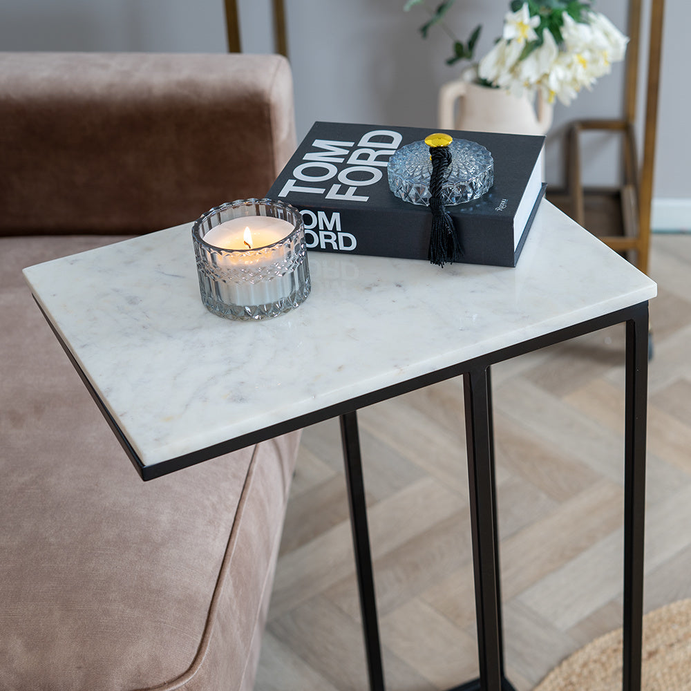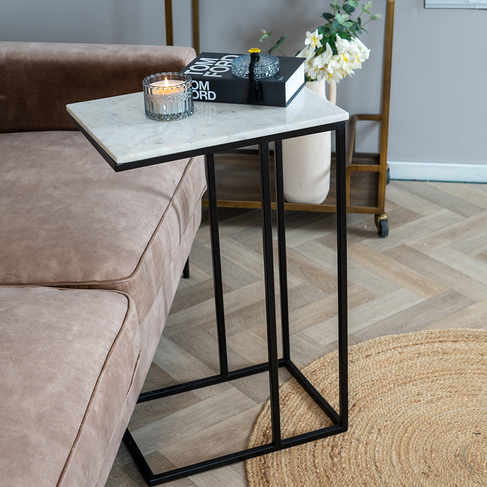 Moderne laptoptafel marmer Zoey wit is de ideale tafel die jij nodig hebt als jij op de bank zit. Deze tafel kan namelijk eenvoudig over de armleuning van de bank worden heen geschoven zodat jij altijd een tafel bij de hand hebt. Op de tafel kun je jouw laptop of krant neerleggen maar ook geschikt voor een drankje of een hapje tijdens het tv kijken. Let er wel op dat je dan onderzetters gebruikt om kringen en beschadigingen te voorkomen. De marmeren laptoptafel is goed te combineren in verschillende interieurstijlen!