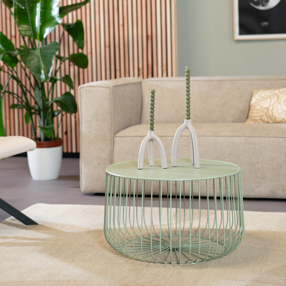 De Senna salontafel is gemaakt van een open metalen frame en een gesloten metalen tafelblad. Dit ontwerp maakt de ronde salontafel uniek. Bovendien is het metaal zeer eenvoudig schoon te maken. Het enige wat je hoeft te doen is het af te vegen met een vochtige doek. Zo is de ronde salontafel ideaal voor een huishouden met kinderen.