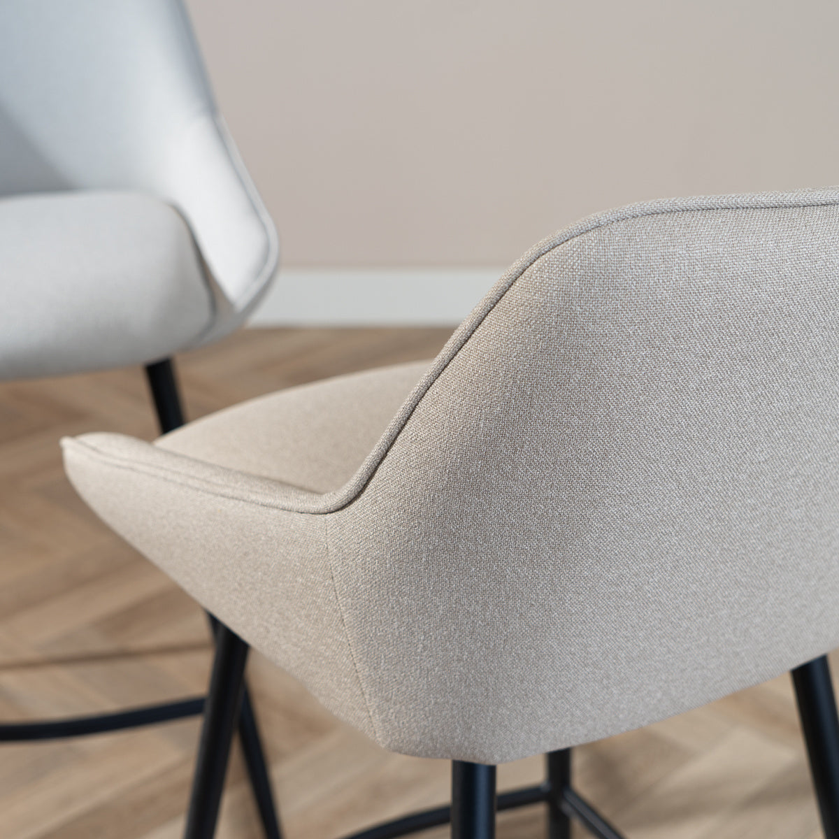 Barkruk Lova is een moderne kruk met Scandinavisch design. De barkruk is op duurzame wijze geproduceerd. De stof is namelijk een 100% gerecyclede stof, gemaakt van plastic flessen. De rugleuning en de voetensteun bieden extra comfort. Hierdoor wil je niets anders dan lekker lang blijven zitten. Het metalen frame bestaat uit vier poten waardoor barkruk Lova stevig staat. Het frame is zwart gepoedercoat en geeft een luxe en moderne uitstraling in combinatie met de Scandinavische stof.