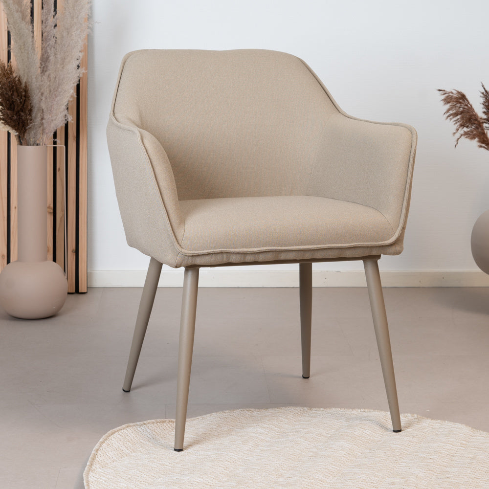 Het unieke aan de Elin eetkamerstoel is dat het frame is uitgevoerd in een taupe kleur. Dit zorgt voor rust, eenvoud en speelt helemaal in op de huidige interieurtrend. Het frame is gemaakt van gepoedercoat metaal.