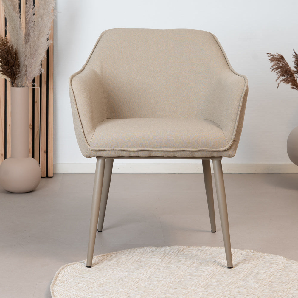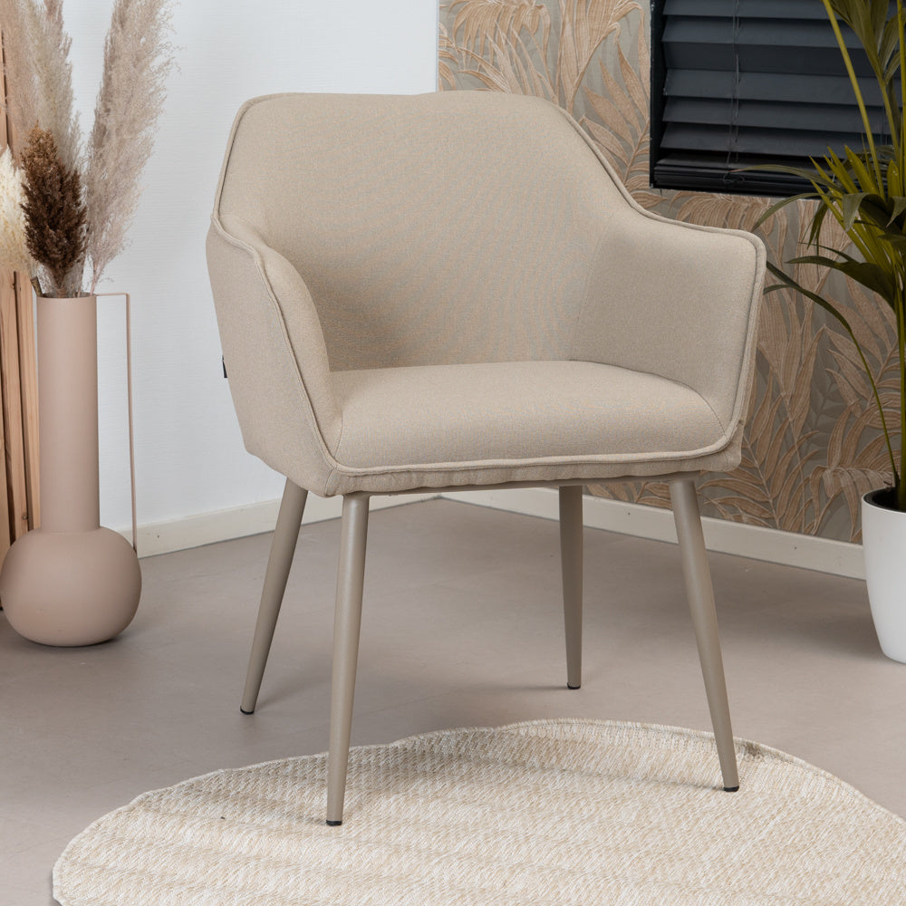 Het unieke aan de Elin eetkamerstoel is dat het frame is uitgevoerd in een taupe kleur. Dit zorgt voor rust, eenvoud en speelt helemaal in op de huidige interieurtrend. Het frame is gemaakt van gepoedercoat metaal.