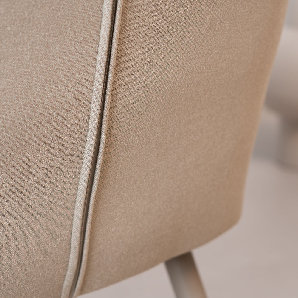 Scandinavische eetkamerstoel Elin is verkrijgbaar in de kleuren beige en taupe welke goed met elkaar te combineren zijn.