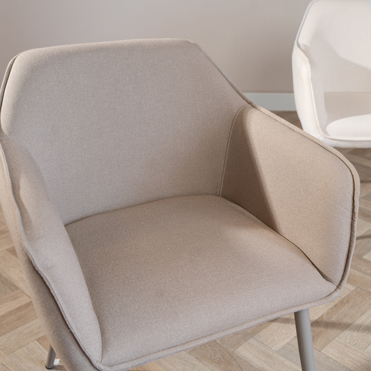Scandinavische eetkamerstoel Elin is verkrijgbaar in de kleuren beige en taupe die goed met elkaar te combineren zijn.
