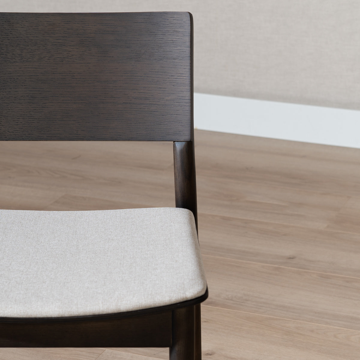 De zitting en de rugleuning zijn gemaakt van multiplex met een laag fineer en het frame is gemaakt van 100% massief eiken. Eikenfineer staalt warmte uit en is duurzaam. Eikenfineer is gevoelig voor krassen en deuken dus het is belangrijk om de eetkamerstoel goed te beschermen. Het is ook een goed idee om het meubel uit direct zonlicht te houden omdat dit de kleur van het fineer na verloop van tijd kan vervagen.