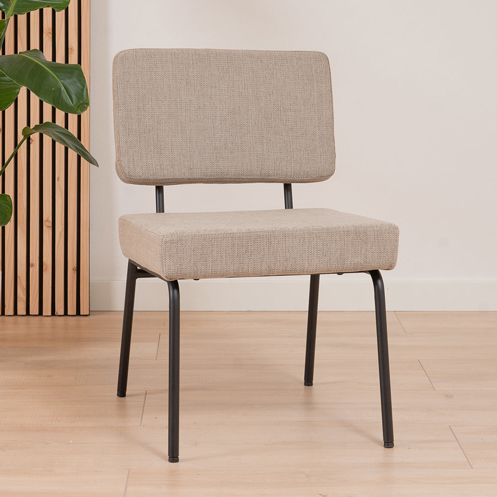 - De stoel is ruimtebesparend doordat deze geen armleuningen heeft.