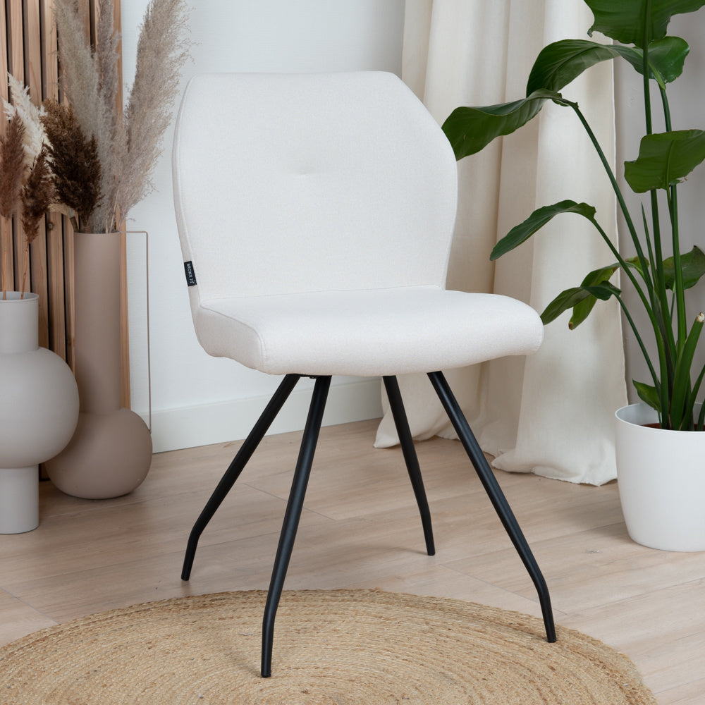 Het onderstel is gemaakt van een stevig gepoedercoat metaal. In combinatie met de Scandinavische stoelbekleding wordt er een frisse maar tegelijkertijd neutrale uitstraling gecreëerd in het interieur.