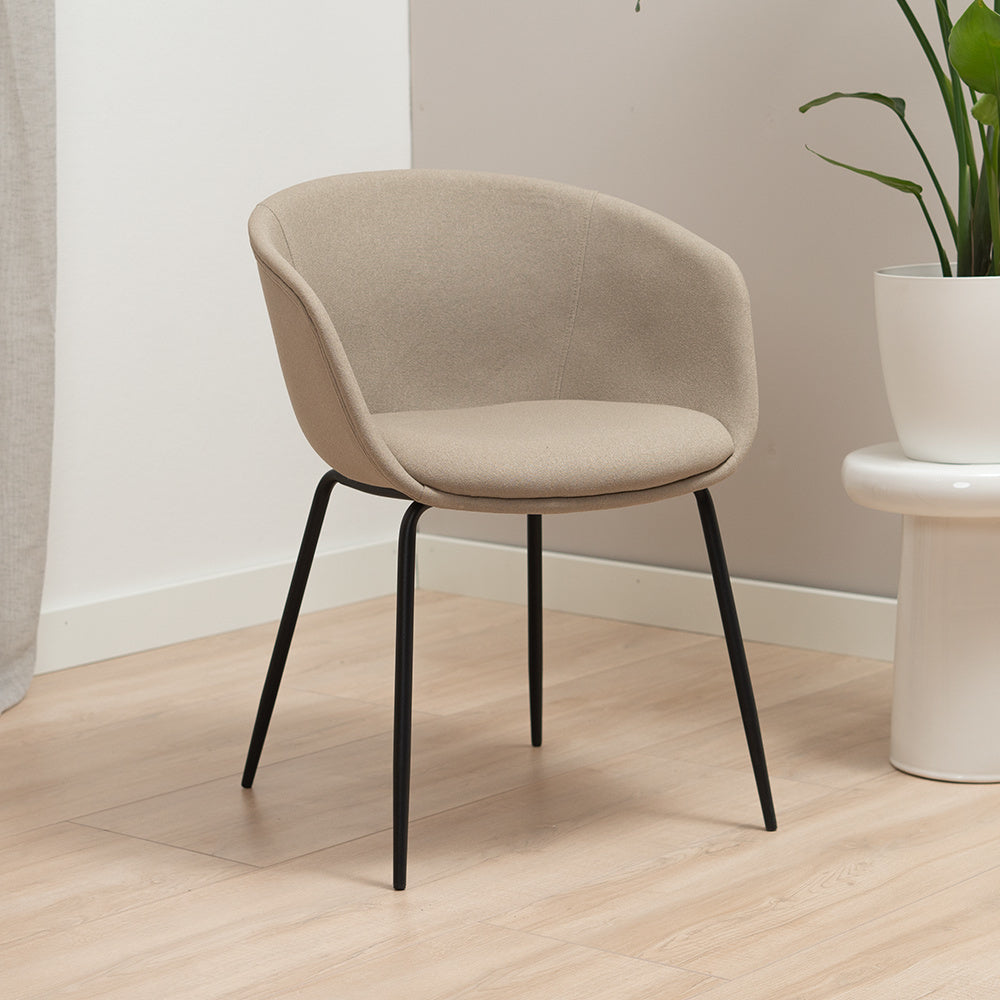 Scandinavische stoel Ole is verkrijgbaar in de kleuren beige, taupe en grijs.