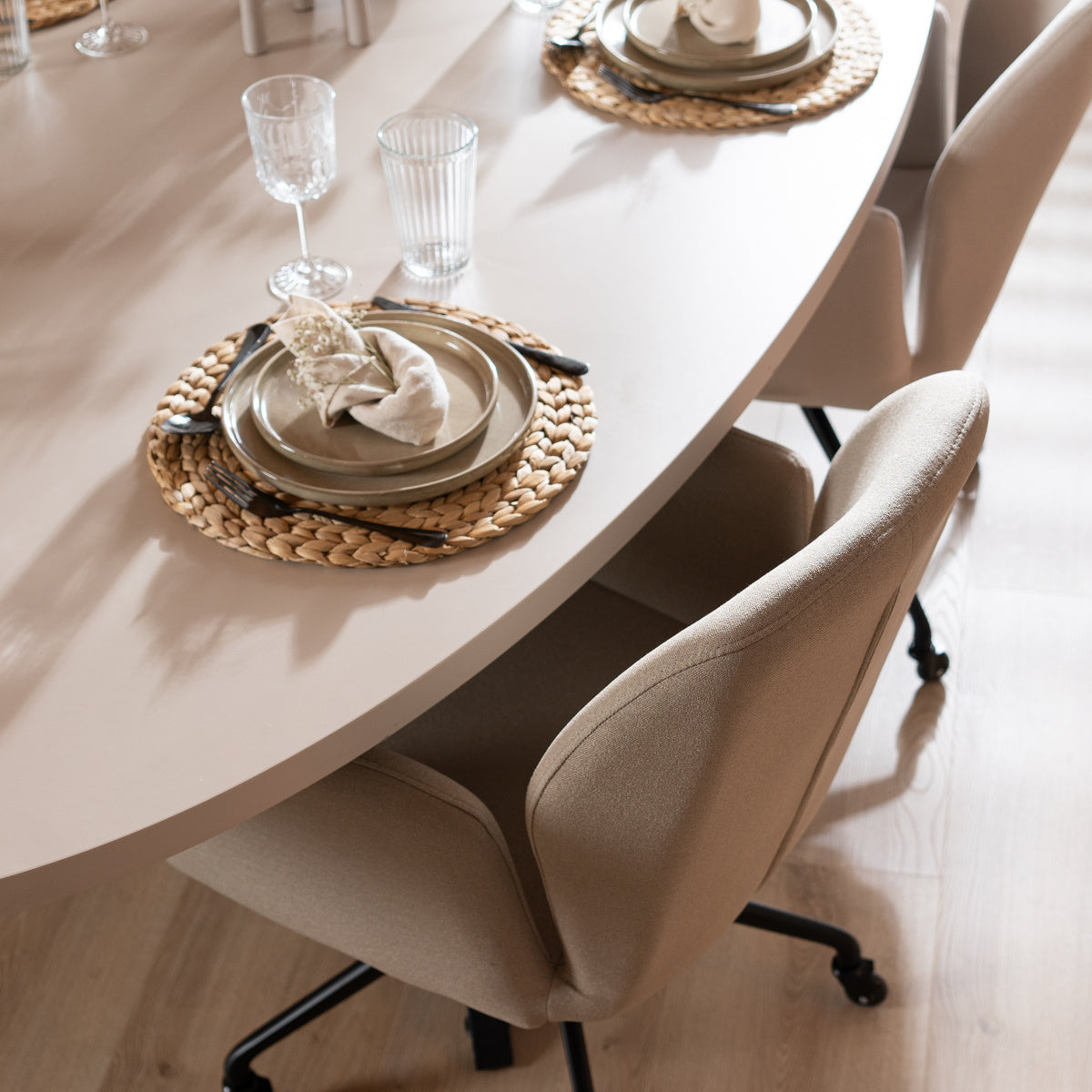 De Scandinavische eetkamerstoel Runa is een stoel op wieltjes. Hierdoor kun je de stoel, maar ook jezelf wanneer je in de stoel zit, makkelijk verplaatsen. De medium harde skatewieltjes maken de stoel zeer geschikt voor verschillende vloeren zonder dat deze sporen achterlaat. Zo kun je deze stoel met een gerust hart plaatsen op welke vloer dan ook. Daarnaast maken deze wieltjes geen tot weinig geluid wanneer je rolt over de vloer. Dit in tegenstelling tot hardere wieltjes.