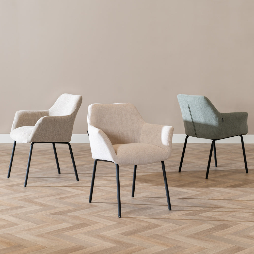 Eetkamerstoel Sten is een comfortabele eetkamerstoel die perfect past in een Scandinavisch interieur. De stoel heeft een royale zitting en gewatteerde armleuningen, wat zorgt voor extra comfort. De zachte kleuren van de stoel zorgen voor een minimalistische look en zijn hierdoor gemakkelijk te combineren met andere kleuren in je interieur. Rond een Deense ovale eetkamertafel plaats je met gemak vier, zes of acht stoelen. Eetkamerstoel Sten nodigt uit tot lange, gezellige avonden met vrienden en familie!