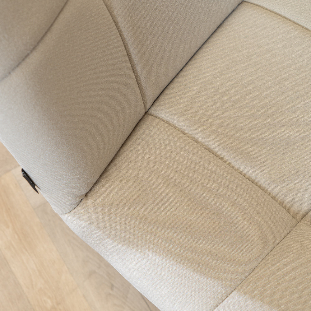 De gerecyclede stof is geïmpregneerd en daardoor volledig waterafstotend. Dus geen paniek wanneer jij morst op jouw favoriete fauteuil. Dit is namelijk makkelijk schoon te maken want vloeistoffen trekken niet in de stof.