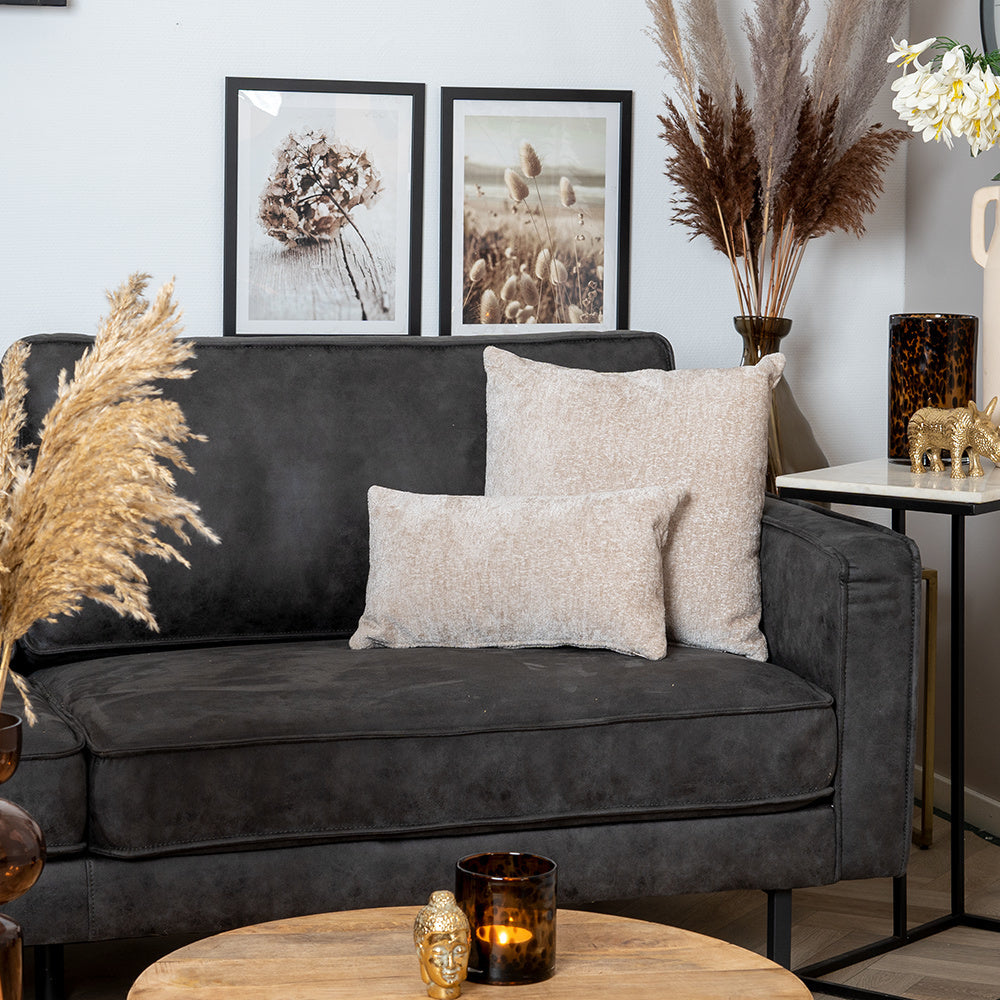 Sierkussen Juna is uitgevoerd in een zachte chenille stof. Chenille stof wordt gemaakt van chenille garen die bestaan uit polyester. De stof heeft een subtiele glans, waardoor de stof een luxe en chique uitstraling heeft. Kenmerkend voor chenille is dat het door zijn zachte glans op fluweel lijkt. Daarnaast is chenille gemakkelijk in onderhoud. De stof heeft een martindale score van 100.000, wat inhoudt dat de fauteuil extreem slijtvast is en wel tegen een stootje kan