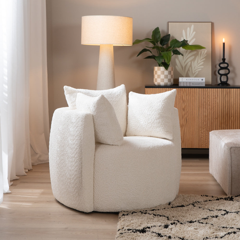 Met de Ruby fauteuil maak jij gegarandeerd een statement in huis. Het is de combinatie van de stof met het model met de kussens en armleuning wat deze fauteuil echt uniek maakt. Door de dikte van het kussen is de fauteuil super comfortabel en perfect om na een lange dag in te relaxen. Door het unieke ronde model is de fauteuil uitermate geschikt voor verschillende interieurstijlen.