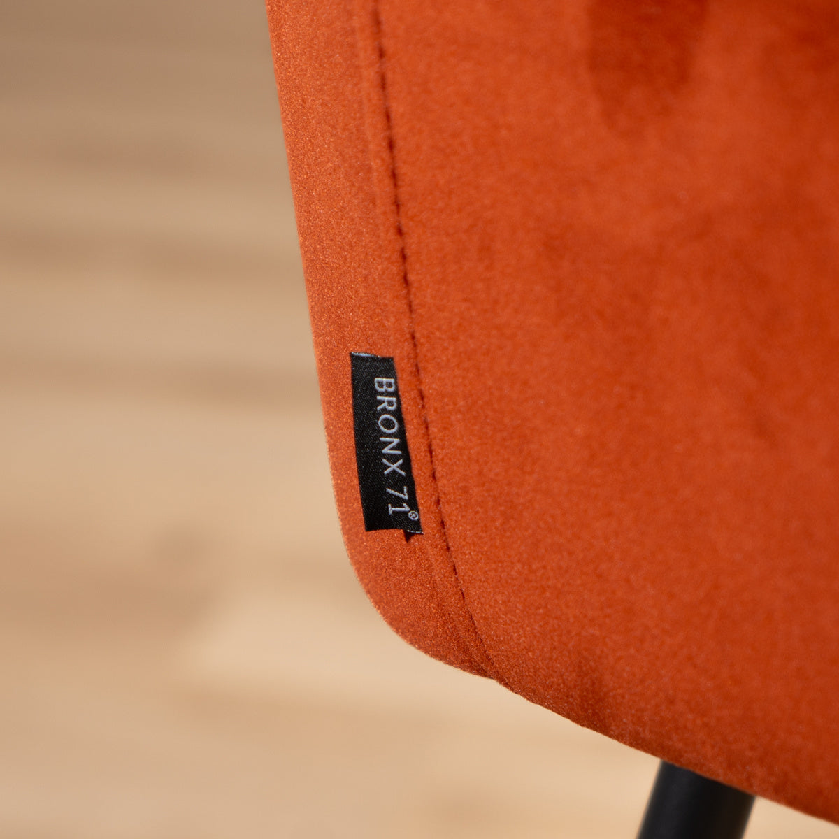 De kruk is gemaakt van velvet wat ook wel velours wordt genoemd. Deze stof staat bekend om zijn luxueuze en glanzende uitstraling. De stof heeft een Martindale score van 70.000, dat betekent dat deze erg slijtvast is! Daarnaast is de velvet stof waterafstotend. Je hoeft je dus geen zorgen te maken wanneer je jouw drankje per ongeluk over de kruk heen laat vallen.