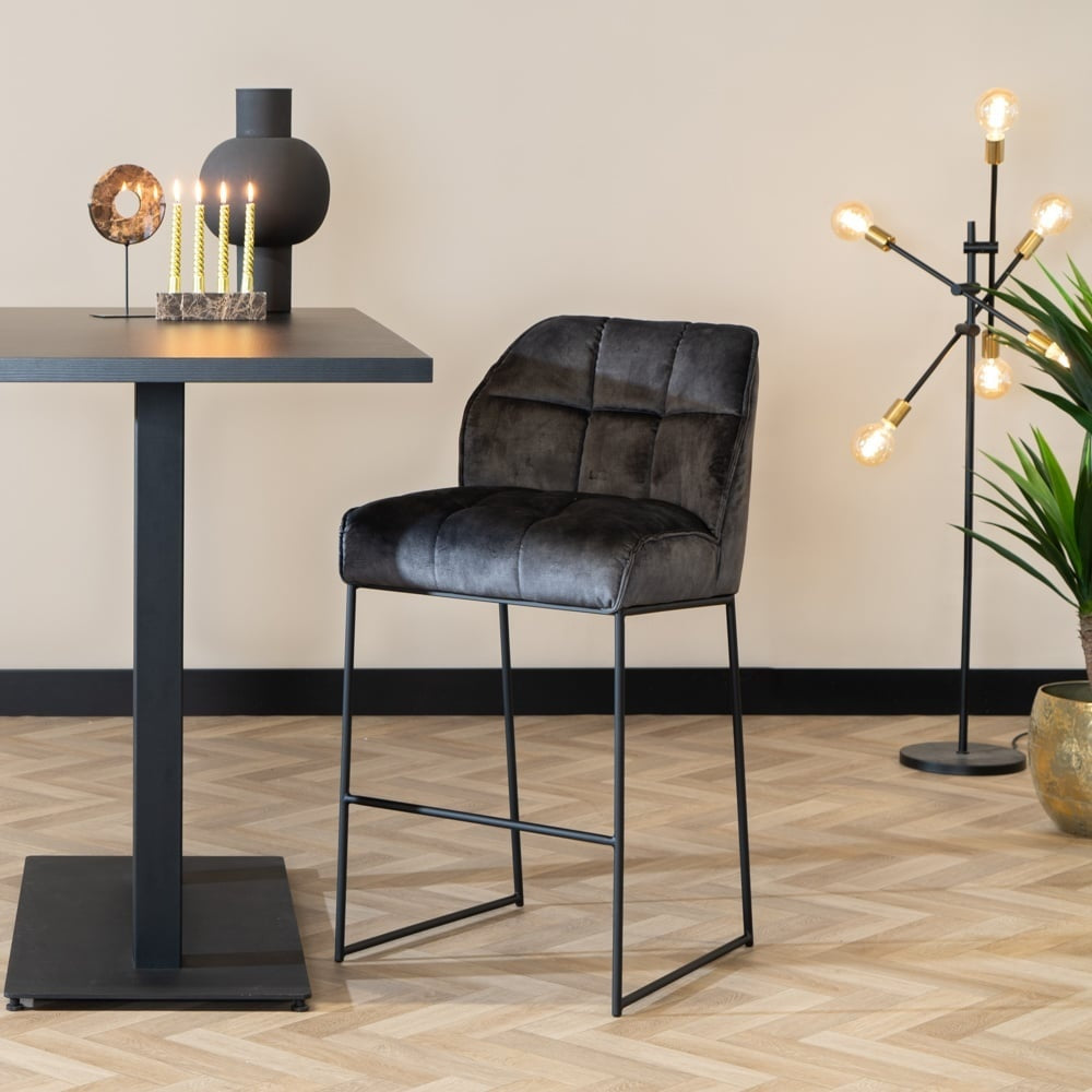Bronx71 Velvet barkruk Janna antraciet 82 cm
