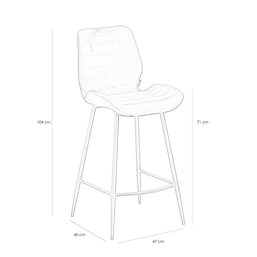 Toby heeft een mooie zitting met een horizontale streep patroon. De barstoel heeft geen armleuningen waardoor deze ruimtebesparend is, maar toch een hoog zitcomfort heeft. De luxe stof van de barkruk heeft een martindale score van 70.000, wat betekent dat de stof heel slijtvast is! Daarnaast is de velvet stof waterbestendig, wat de barstoel perfect maakt voor ieder interieur.