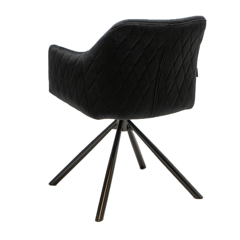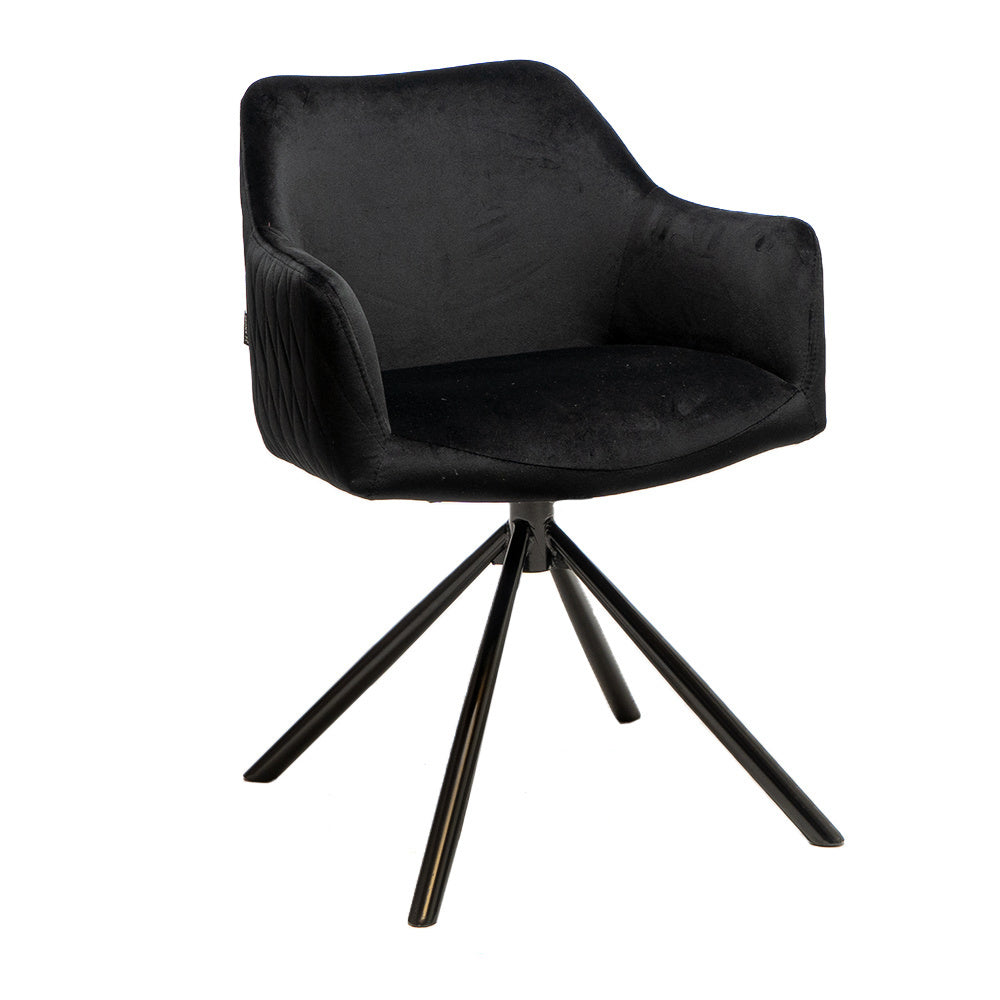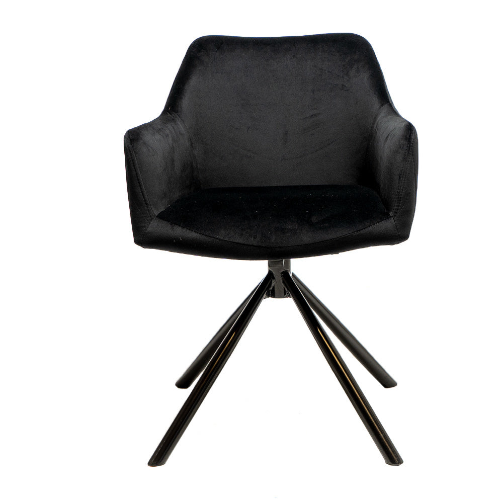 De velvet draaibare eetkamerstoel Furtado is een heus pareltje aan de eettafel. De stoel is bekleed met een zachte velvet stof en heeft een zwart gepoedercoat onderstel. Dit zorgt voor een moderne uitstraling. De eetkamerstoel past perfect in een velvet chique interieur, maar past ook perfect in een modern interieur. De zitting van de Furtado is 180 graden draaibaar en zal altijd terugdraaien naar een rechte zit. Hierdoor staat de eetkamerstoel altijd perfect aan de eetkamertafel. Praktisch en luxe gecombineerd.