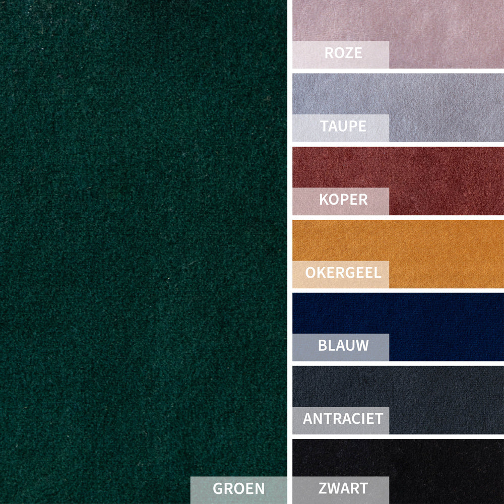 - Deze luxe velvet stof is waterafstotend en onderhoudsvrij.