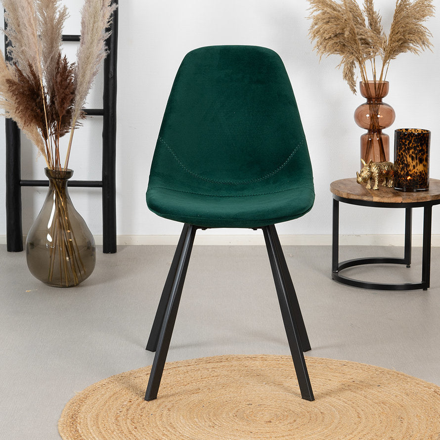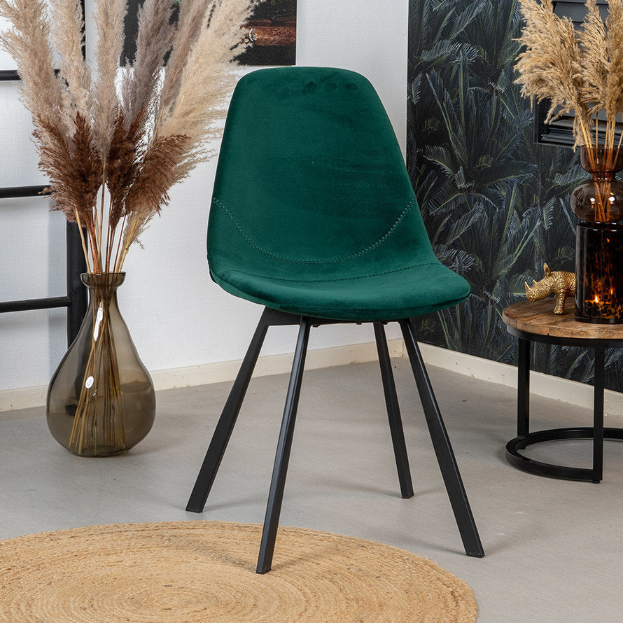Wil jij een velvet eetkamerstoel in het interieur? Dan is de Logan de perfecte stoel! De stoel is bekleed met een zachte velvet stof wat voor een luxueuze uitstraling zorgt. De Logan heeft een heerlijk zitcomfort en is voorzien van stoere stiksels die gelijk zijn aan de kleur van de stof. Zet de Logan aan een prachtige eettafel en de inrichting is compleet! De eetkamerstoel is zeer geschikt voor een modern interieur, of combineer zacht en industrieel en plaats de Logan in een industrieel interieur!