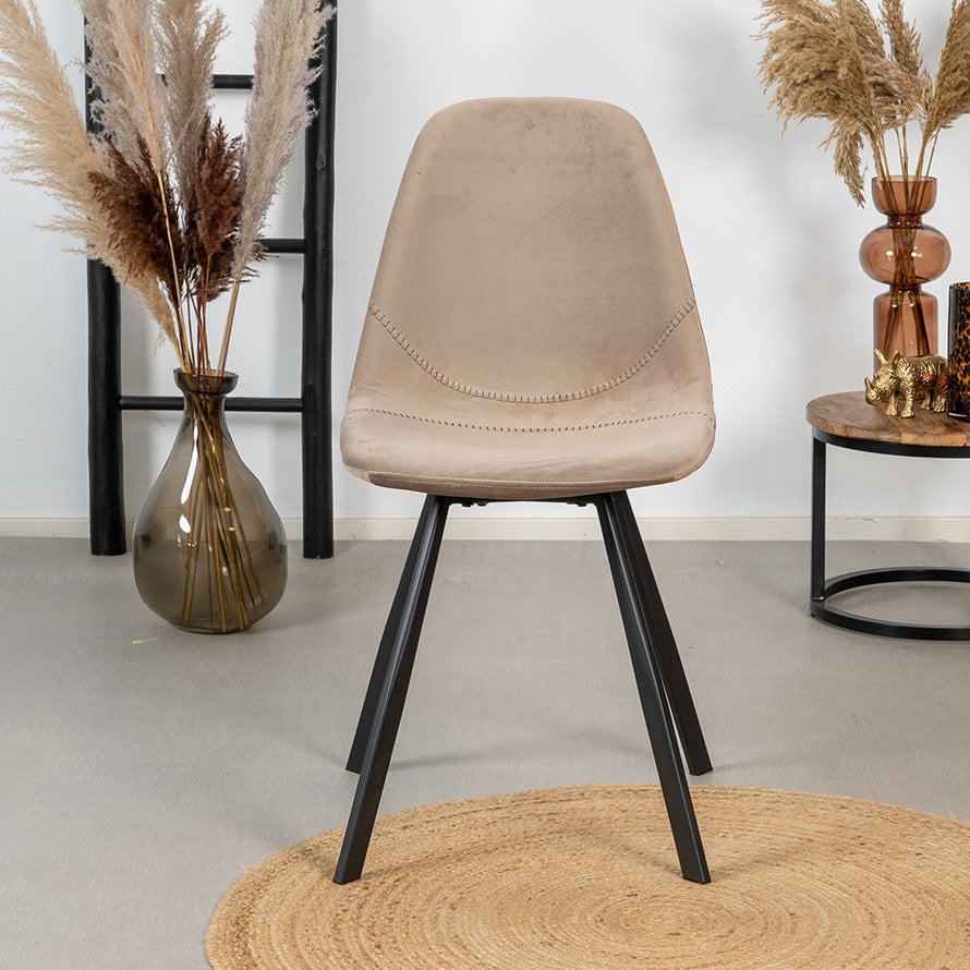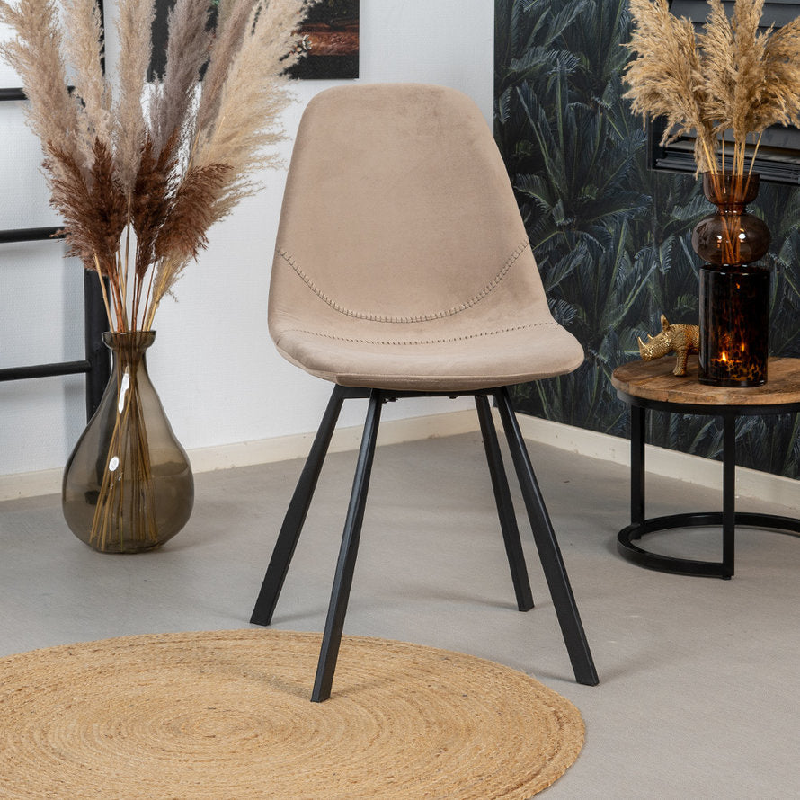 Wil jij een velvet eetkamerstoel in het interieur? Dan is de Logan de perfecte stoel! De stoel is bekleed met een zachte velvet stof wat voor een luxueuze uitstraling zorgt. De Logan heeft een heerlijk zitcomfort en is voorzien van stoere stiksels die gelijk zijn aan de kleur van de stof. Zet de Logan aan een prachtige eettafel en de inrichting is compleet! De eetkamerstoel is zeer geschikt voor een modern interieur, of combineer zacht en industrieel en plaats de Logan in een industrieel interieur!