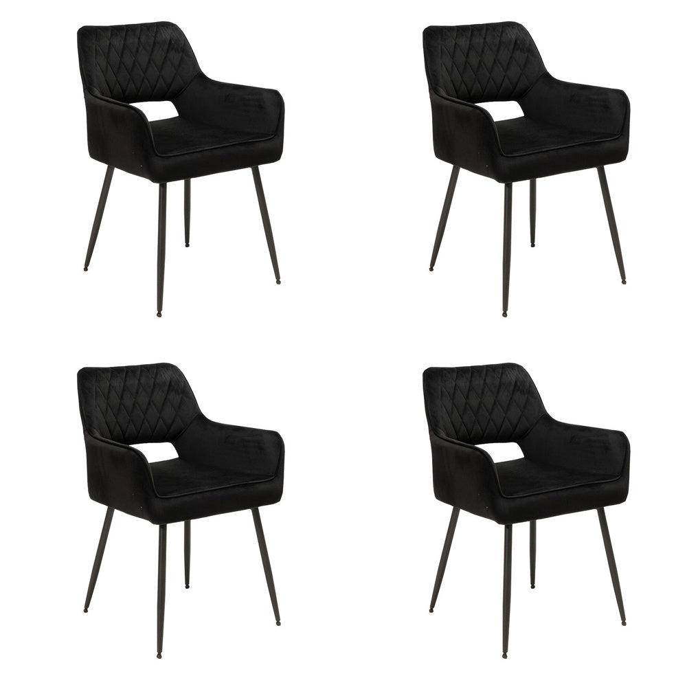 Bronx71 Velvet eetkamerstoel Mika zwart - Eetkamerstoelen set van 4